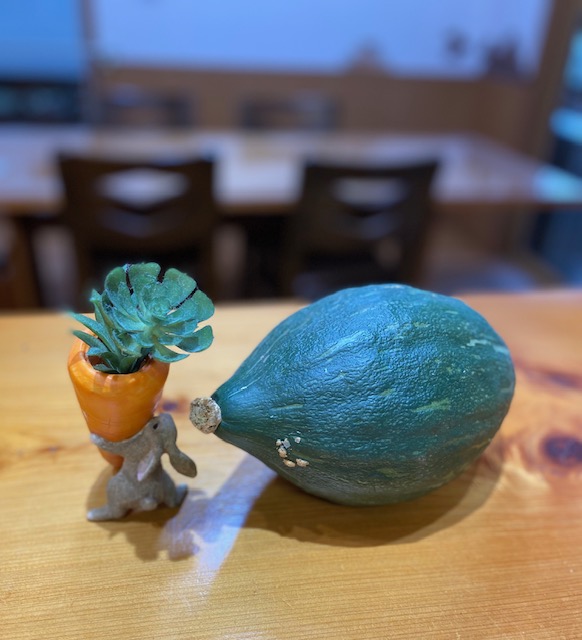 先日は珍しいフットボールのような形のカボチャをいただきました。