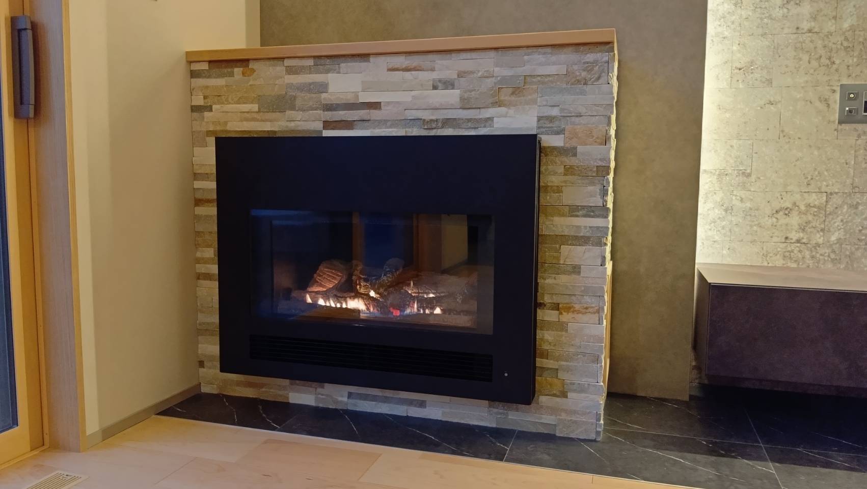 火のゆらぎや全体的な温かさ(暖炉なので輻射熱になるのかな?)