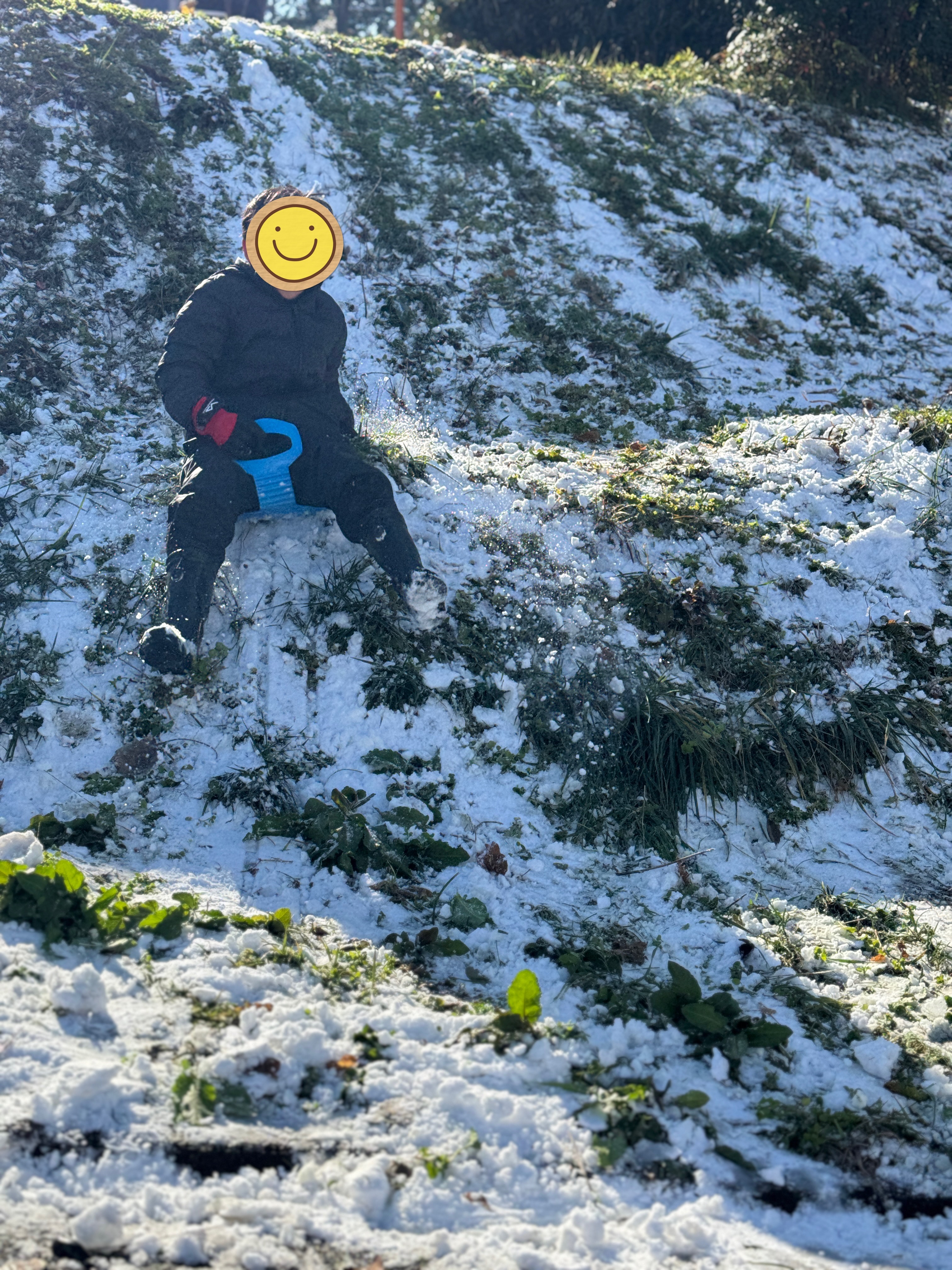 そのあとは自宅近くの坂道へ移動して、そり遊び。