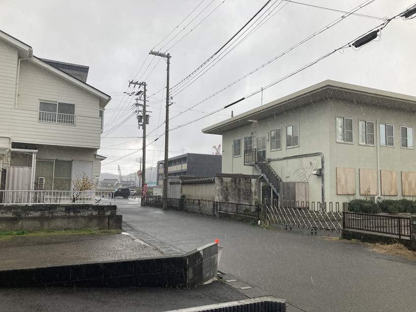 昨日の小浜市一番町での見学会場準備中、結構な雨音と思ったら
