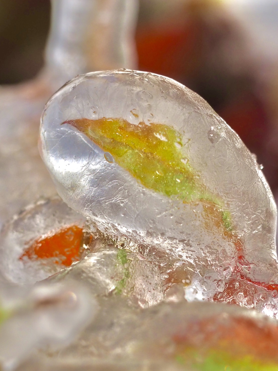 最後に…庭のオタフクナンテンが面白い形に凍っていたので思わず写真を撮りました(^^)/