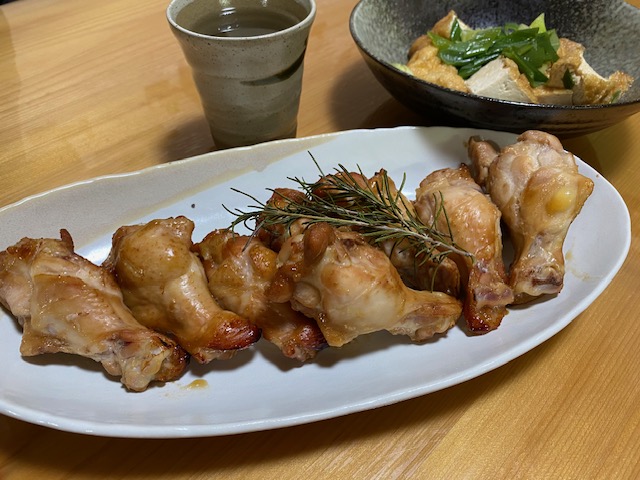 ほったらかしていたローズマリーをのっけてチキンを焼きました。