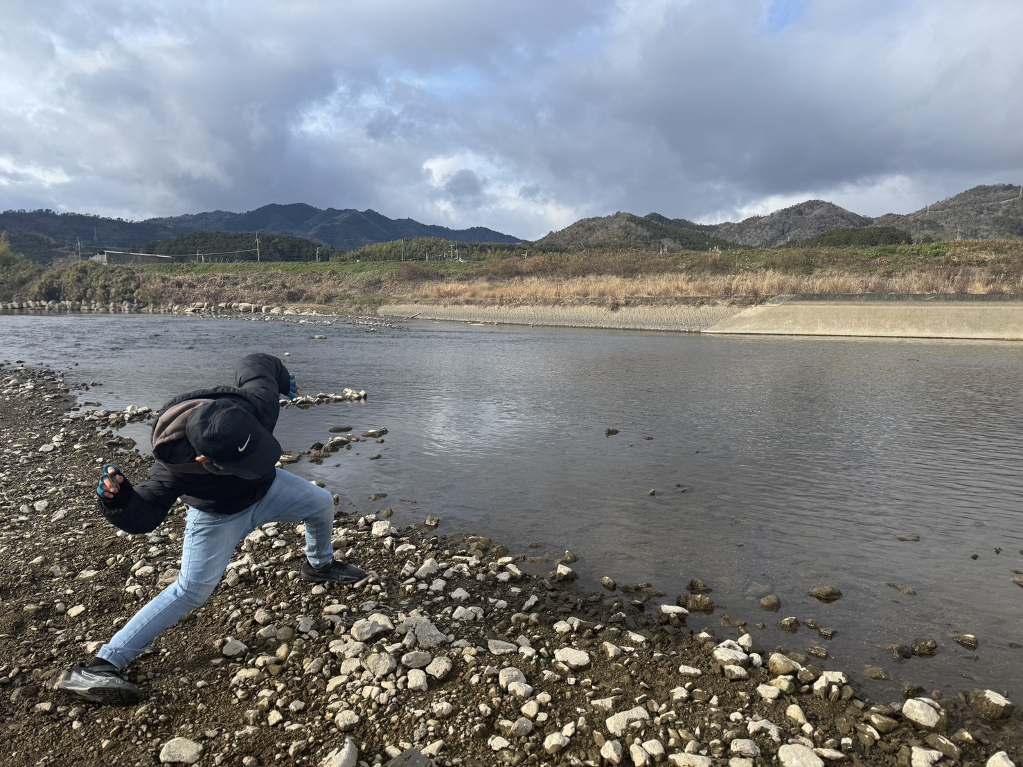元旦は恒例になりつつある水切りをしに近くの川へ行きました。