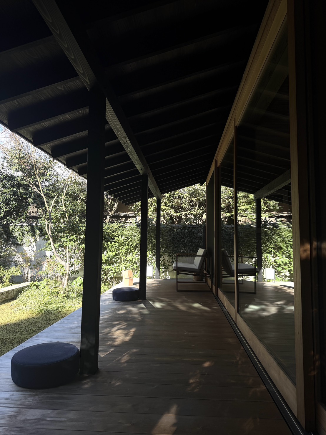 縁側に出ると、目の前には檜林が広がり