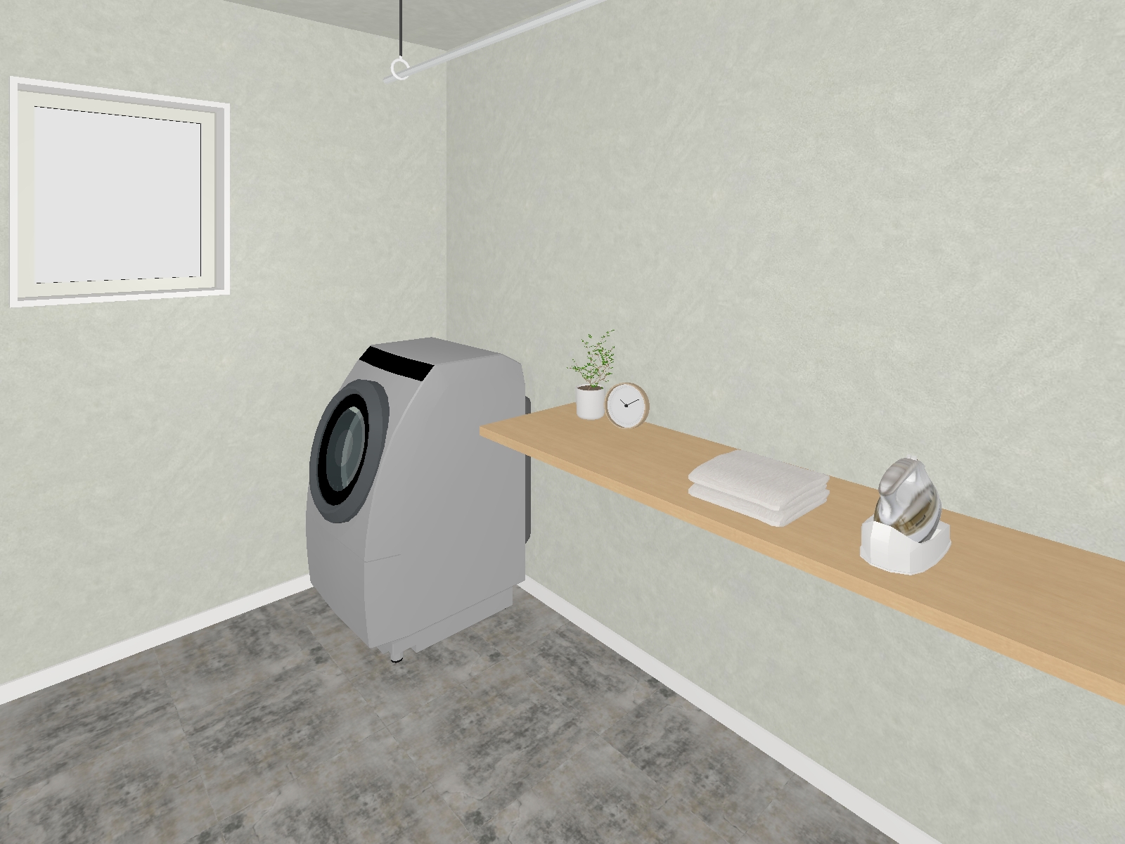 ▲ランドリー兼脱衣所は作業台として便利なカウンター付