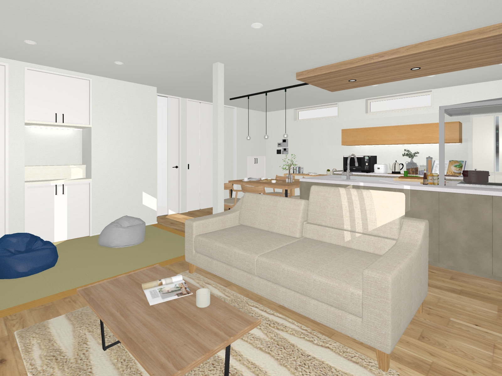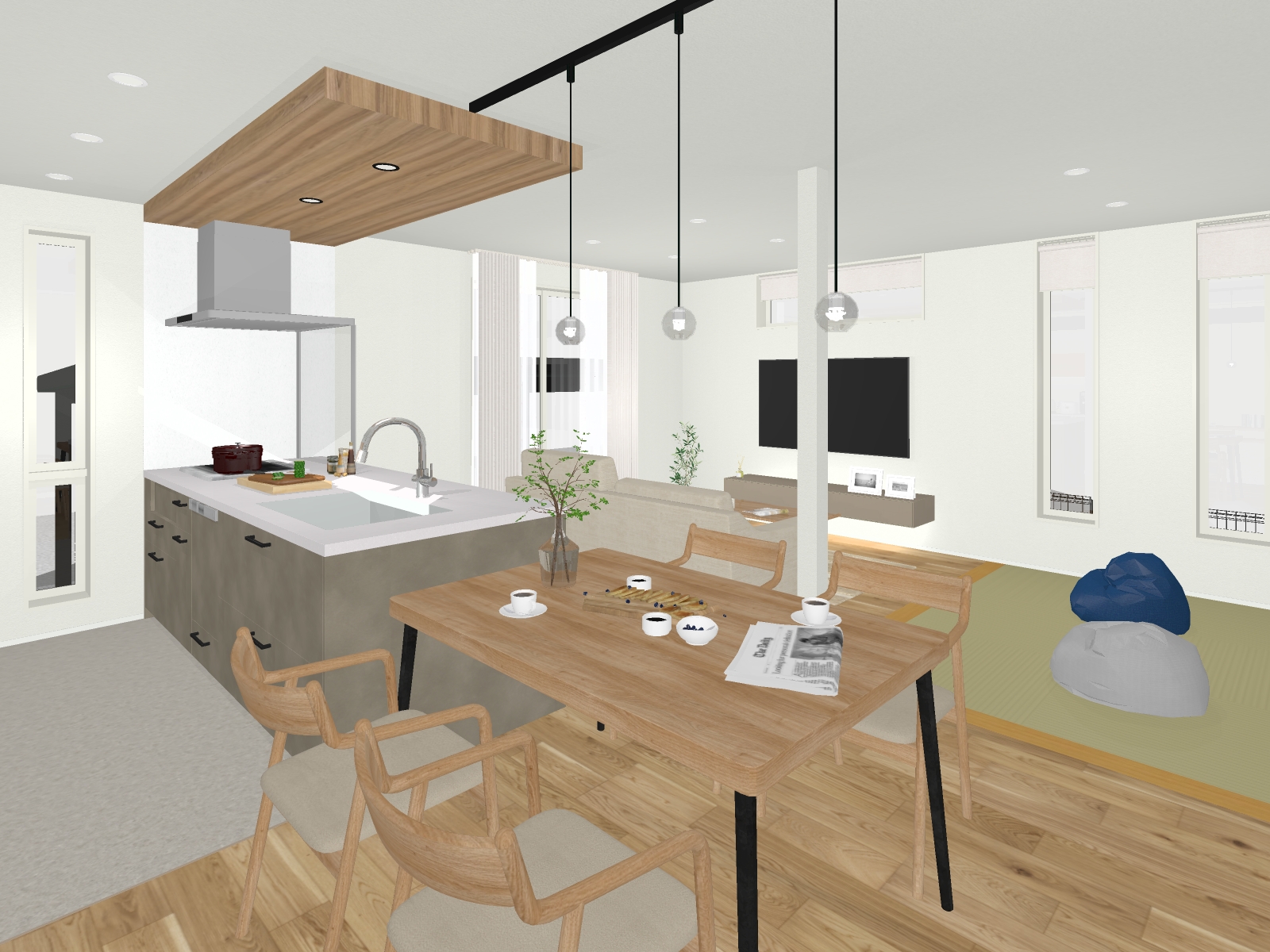 ▲家族が集まるLDKには、多様な使い方が出来る畳コーナーを設けました