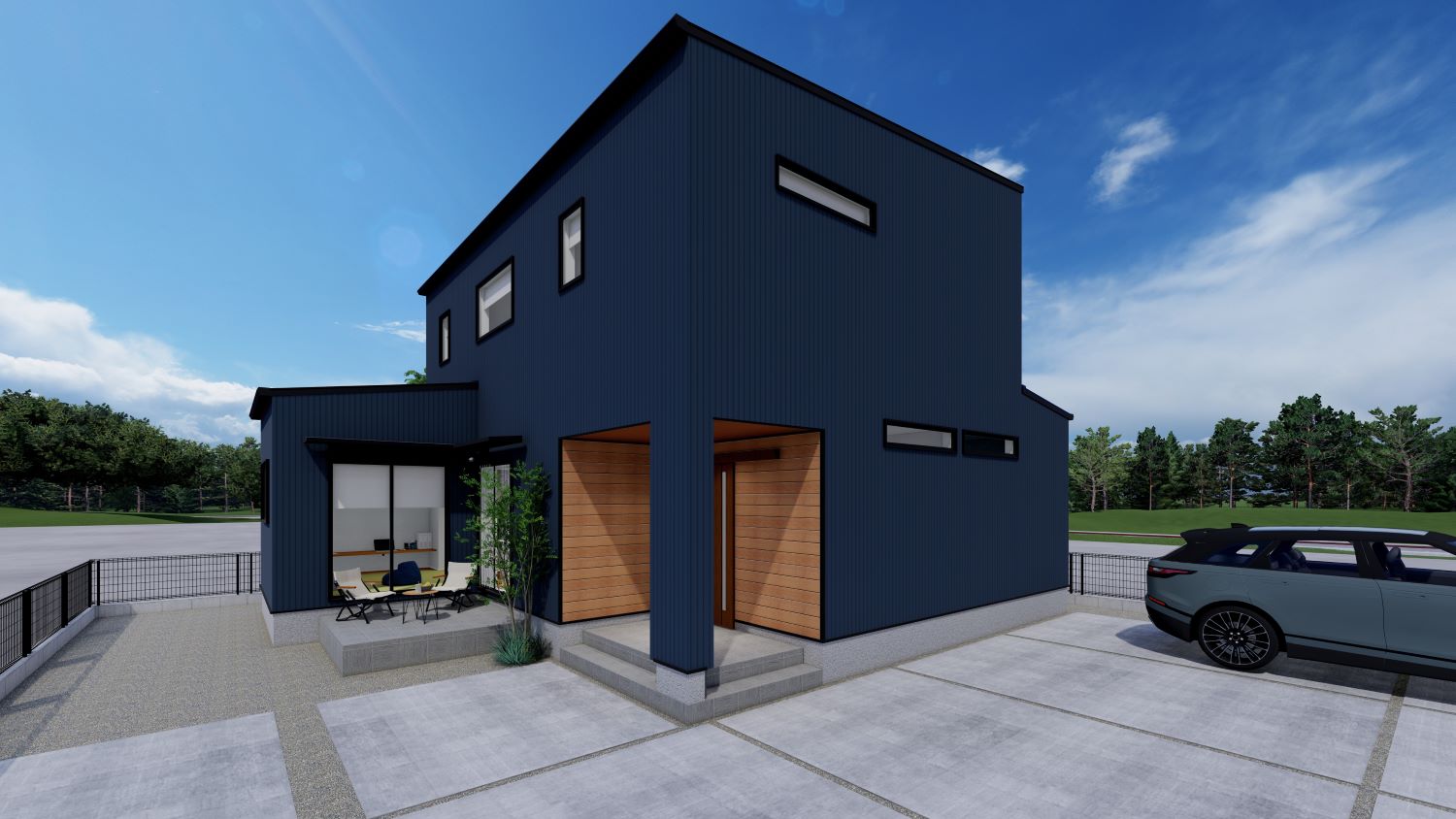 スタイリッシュな外観が目を引く、ガルバリウムの外壁