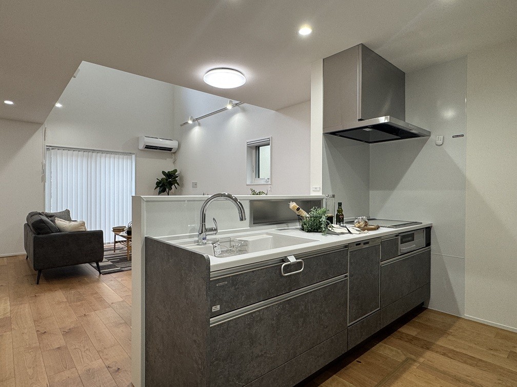 ▲対面式でリビングダイニングを見渡せるキッチンスペース