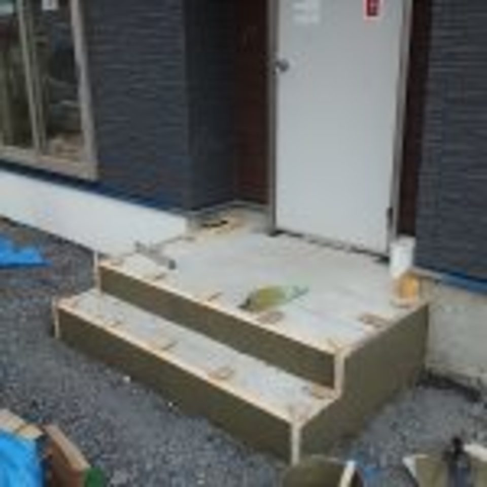玄関タイル部分も下地工事をした後、タイル貼りになります。