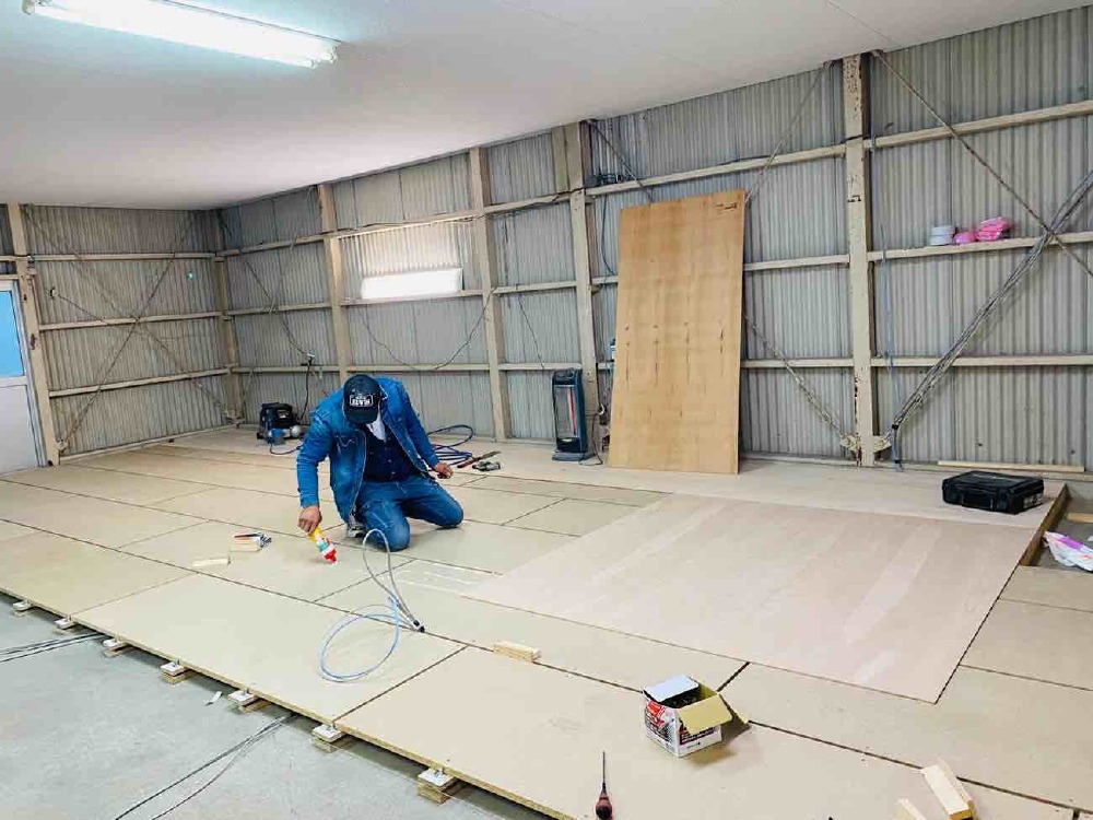 1階のフローリング貼りをしていただいております!