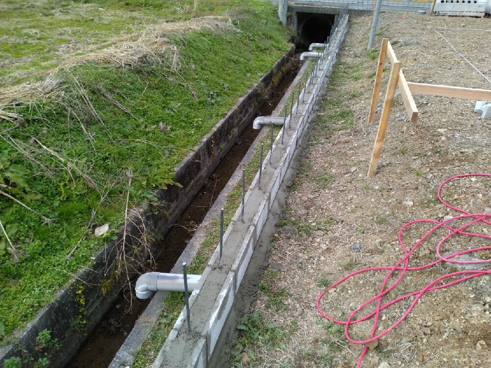境界線部分にコンクリートブロック積とカーポート🚙の組立設置工事を進めさせて頂いています⛑