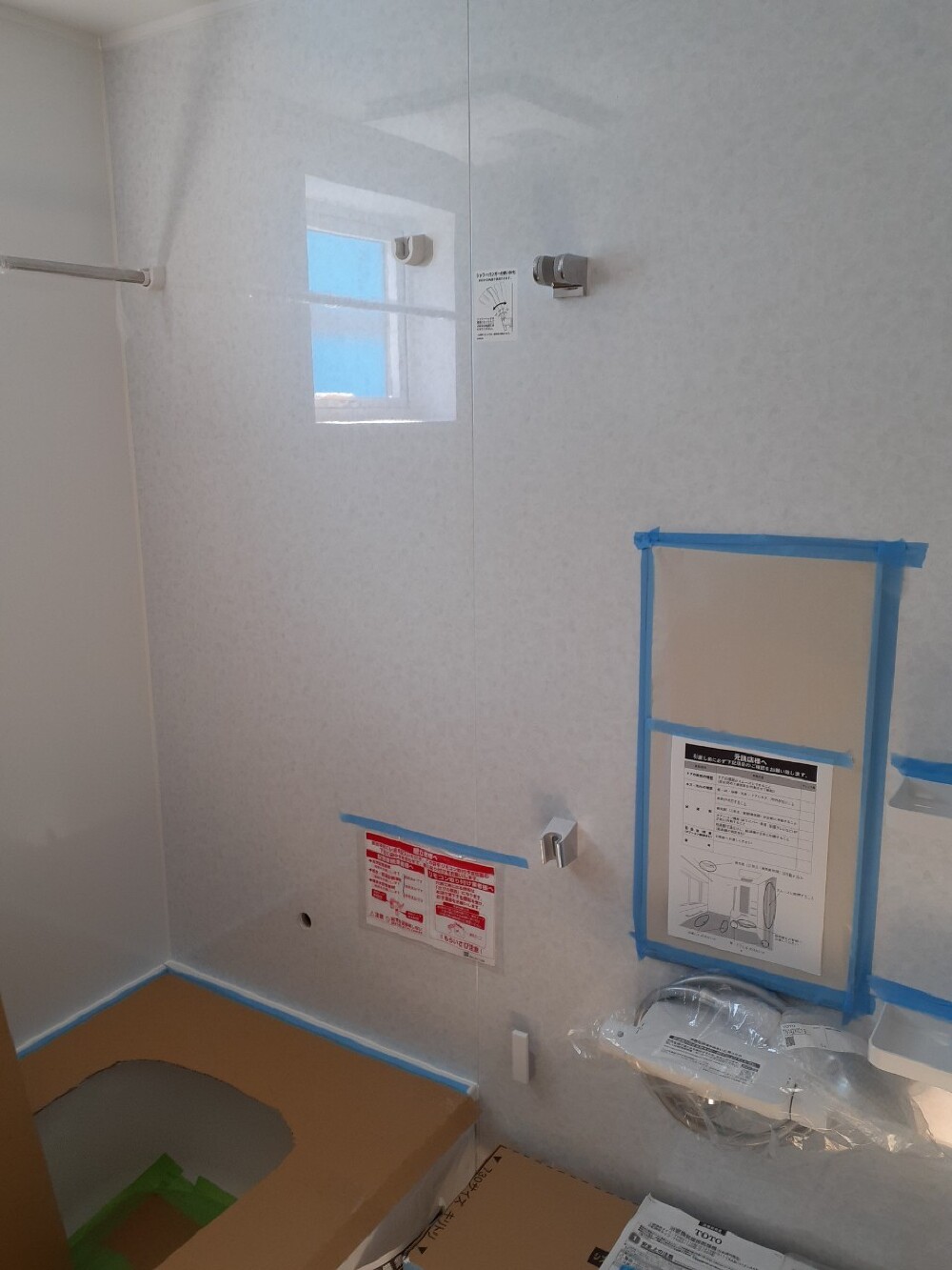 仕上工事でトイレ🚽や洗面台などの設備機器の取付接続作業を進めさせて頂いています🚿