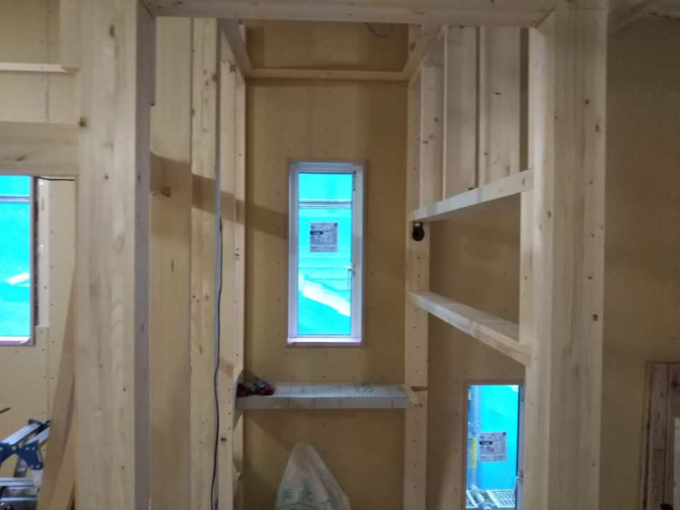 本日はエアコン室内機と、換気のガラリ、火災警報器を取り付けました。