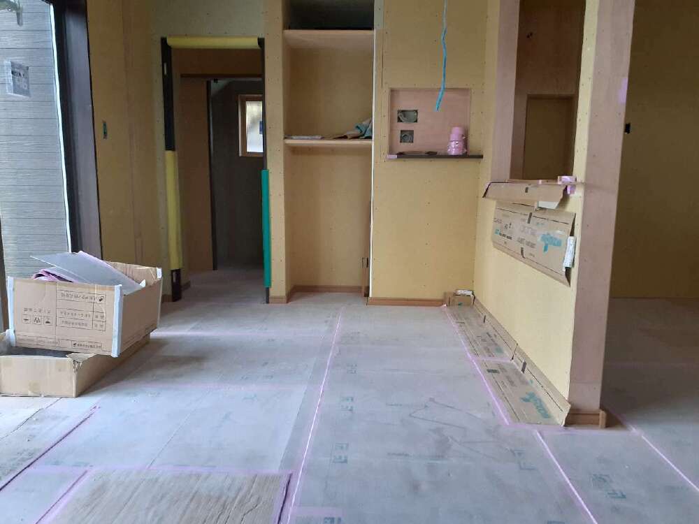 2階は1階への足音の消音効果や床鳴り防止軽減のため、ボードを敷いてからの施工しております💪