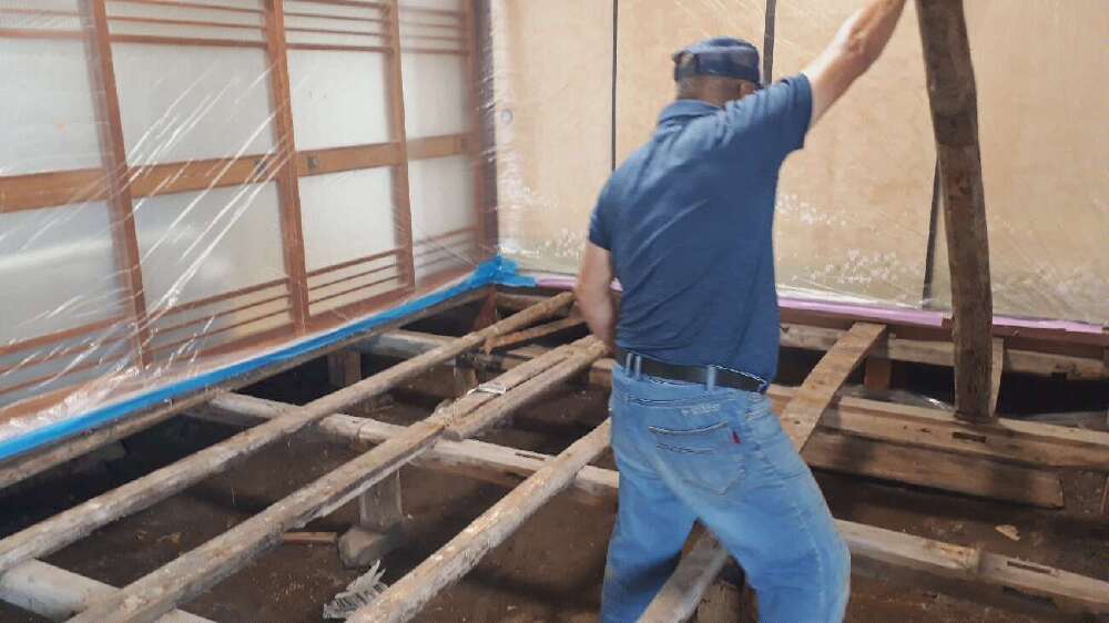 明日、レベルをとり新しい土台・フロアの施工をして頂き、木工事完了の予定です😌