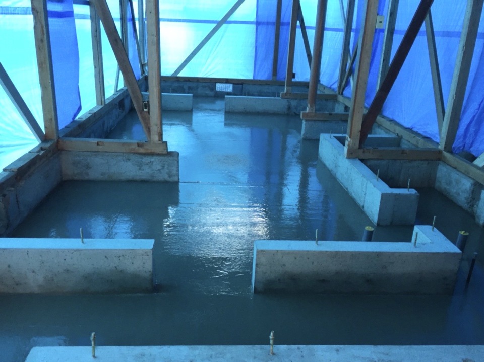 土間の下地調節と防湿シートの敷き込みをしていただきました。