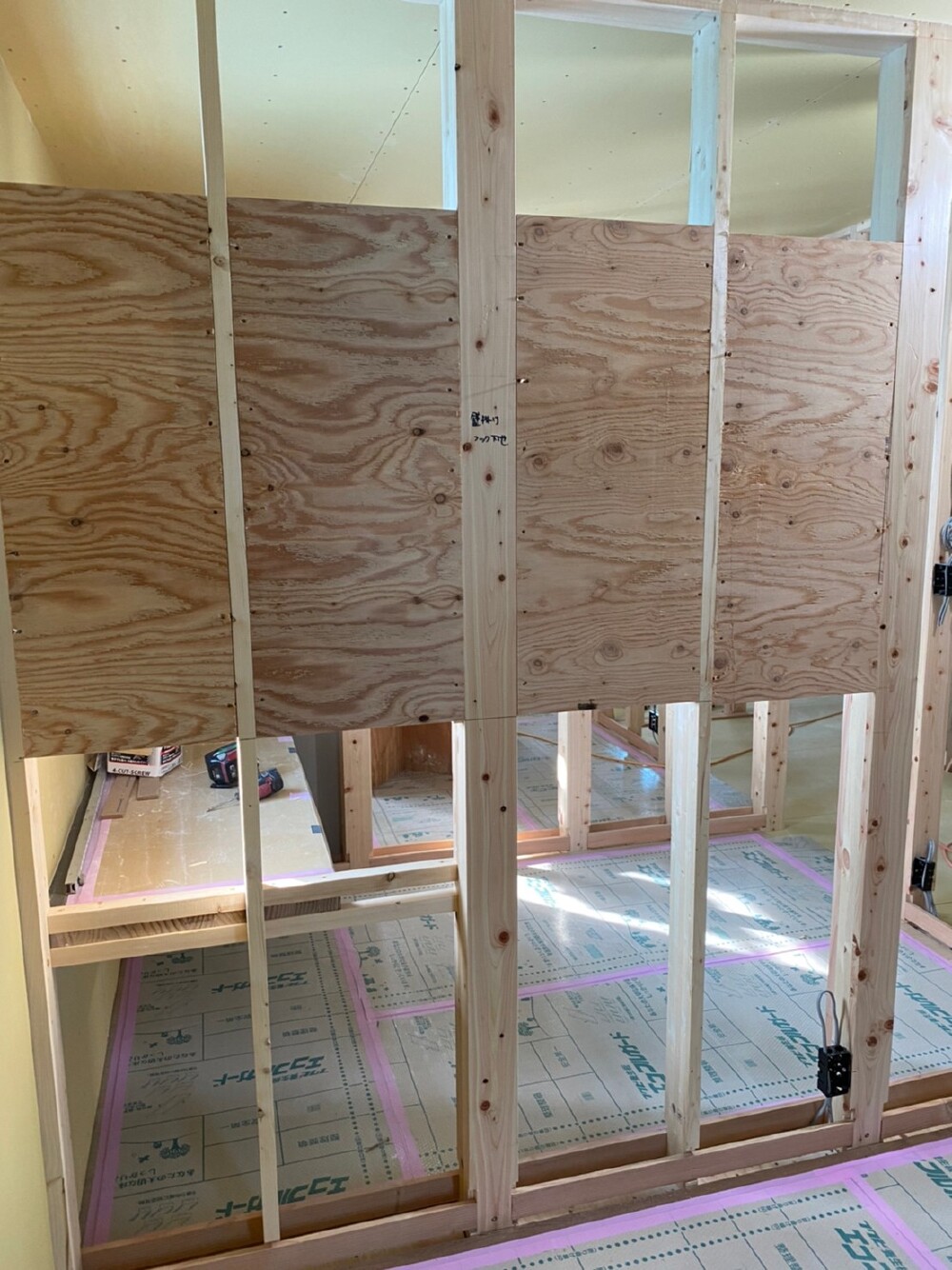 間仕切り間柱入れ・ファイヤーストップの下地をしていただきました😌