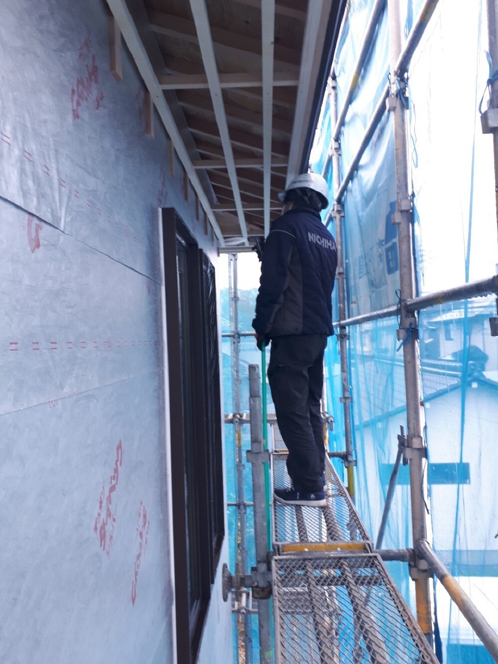 外壁が張り終わり、外壁検査も合格しましたので、足場の解体をしていただきました!