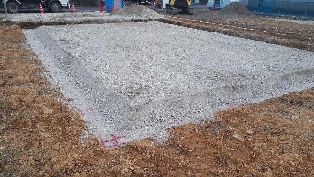 砕石はプレートランマーを使用し、しっかりと踏み固めてあります