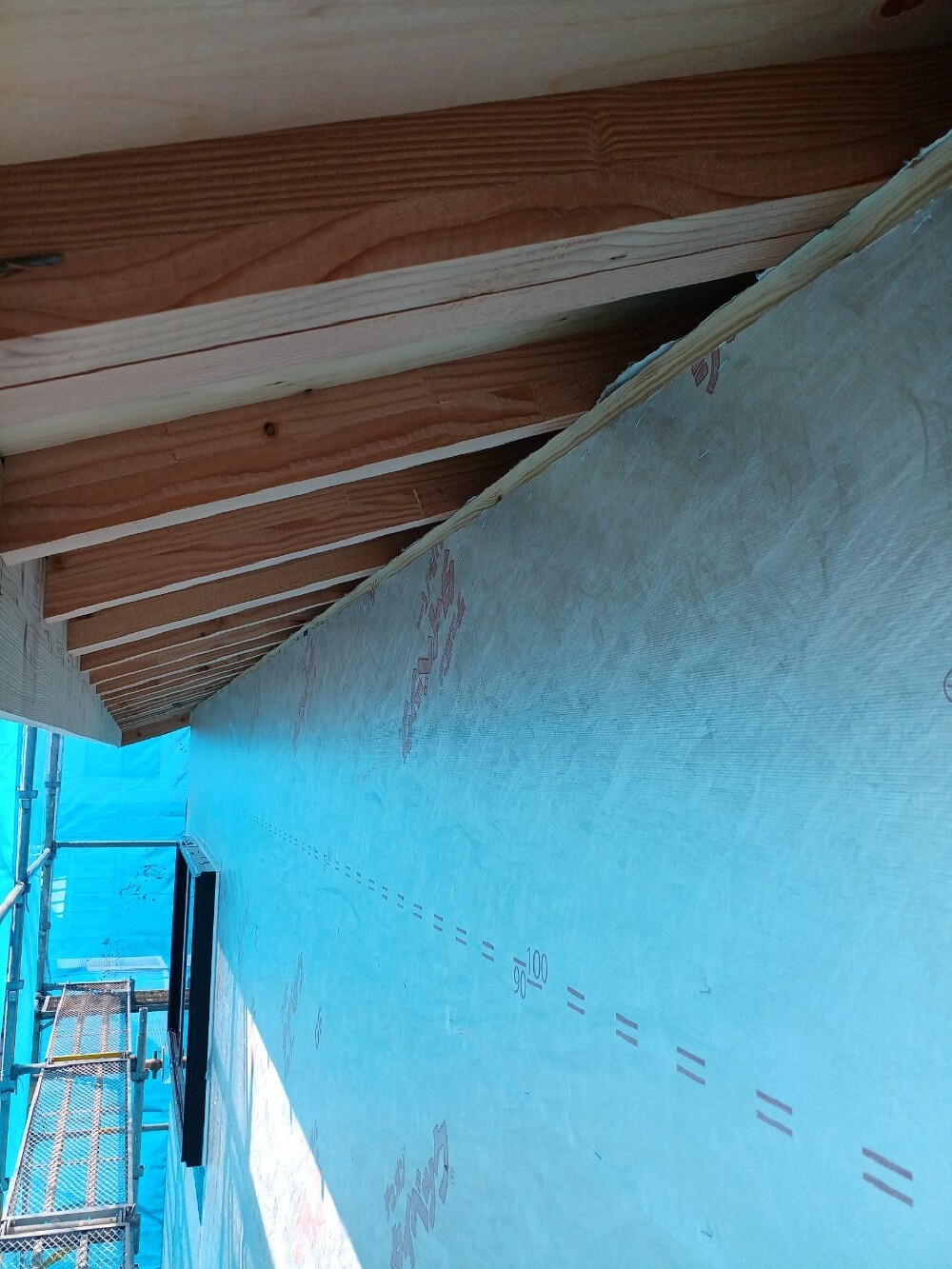 上棟に向けて外部足場の組立設置をさせて頂いています。