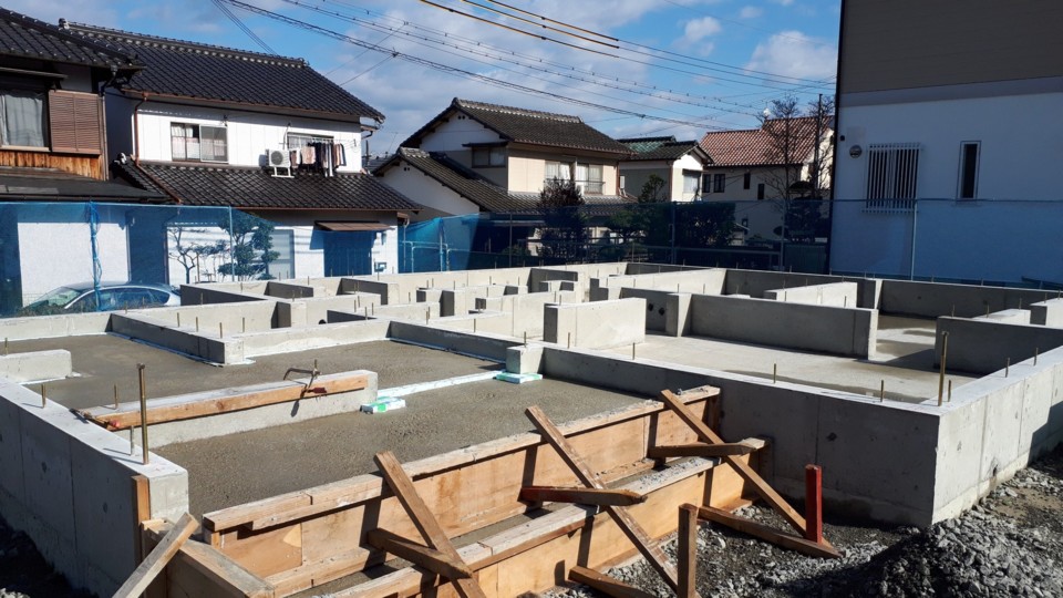 基礎本体が完成し、只今玄関ポーチのコンクリート下地施工中です。