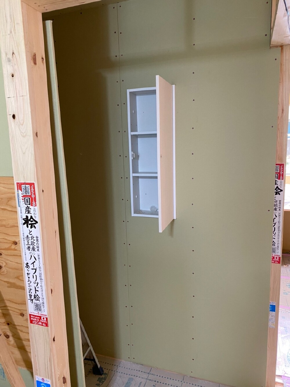 間仕切り壁下地ボードの施工及びニッチなどの造作作業を進めて頂いています🔨