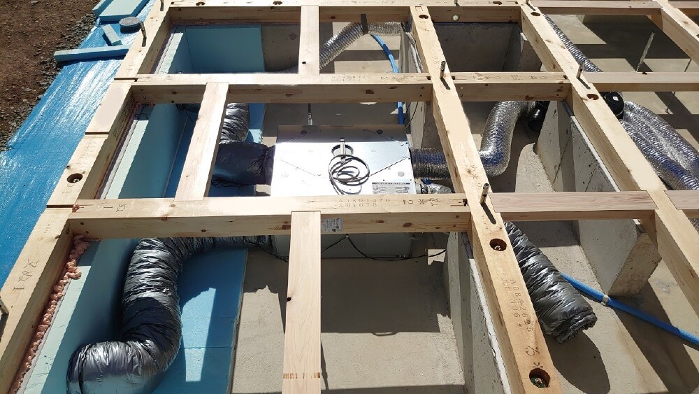 24時間換気システムの本体床下設置と各室行きの配管の施工をしていただきました