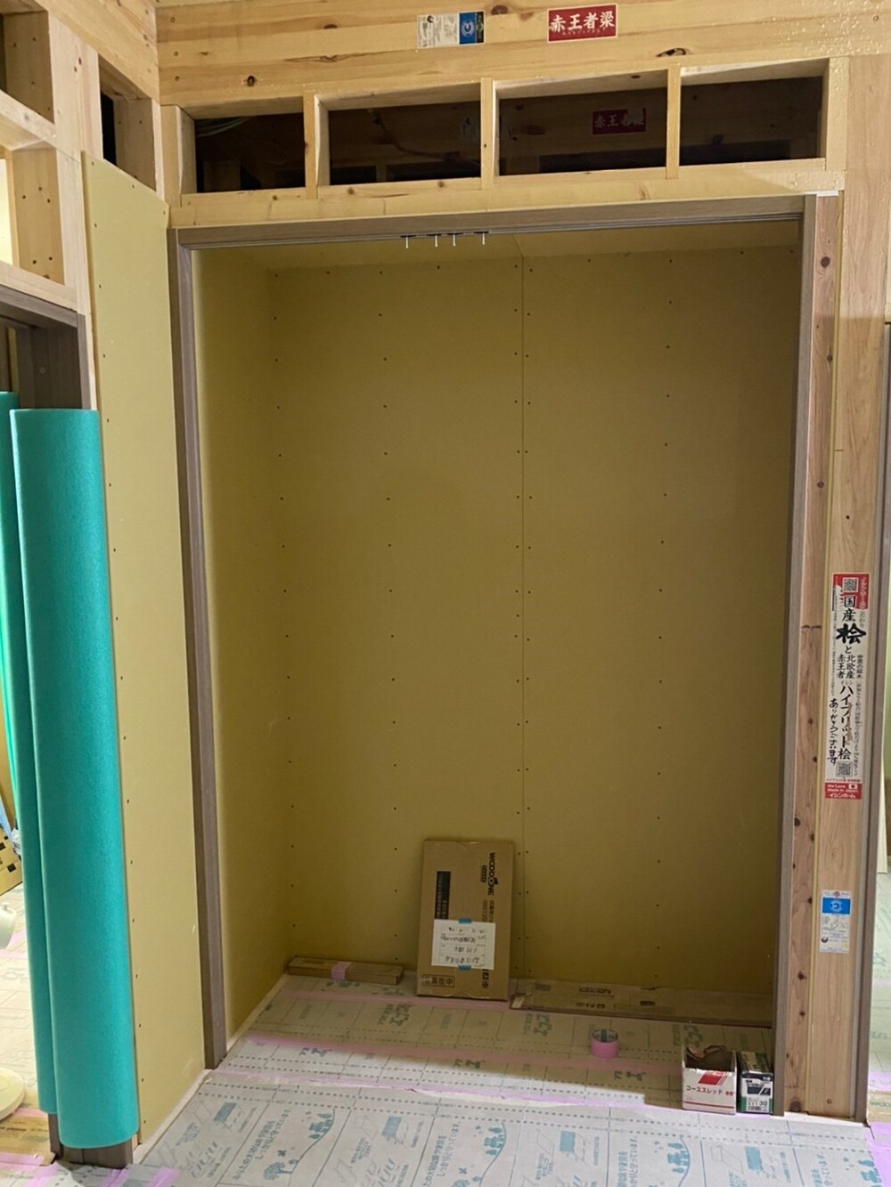 建具枠の取付と間仕切り壁の造作作業を進めて頂いています🔨