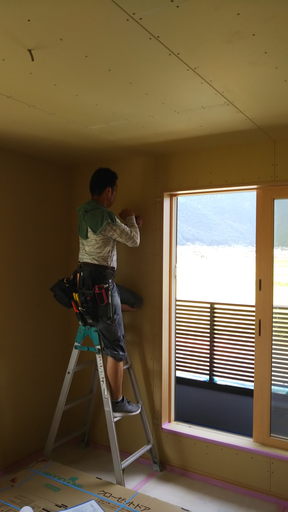 内部では、外周面の壁ボード(石膏ボード)貼りが始まりました☆彡