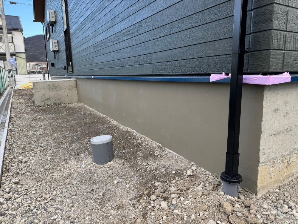 基礎立ち上がり部の下塗りを施工させていただきました。