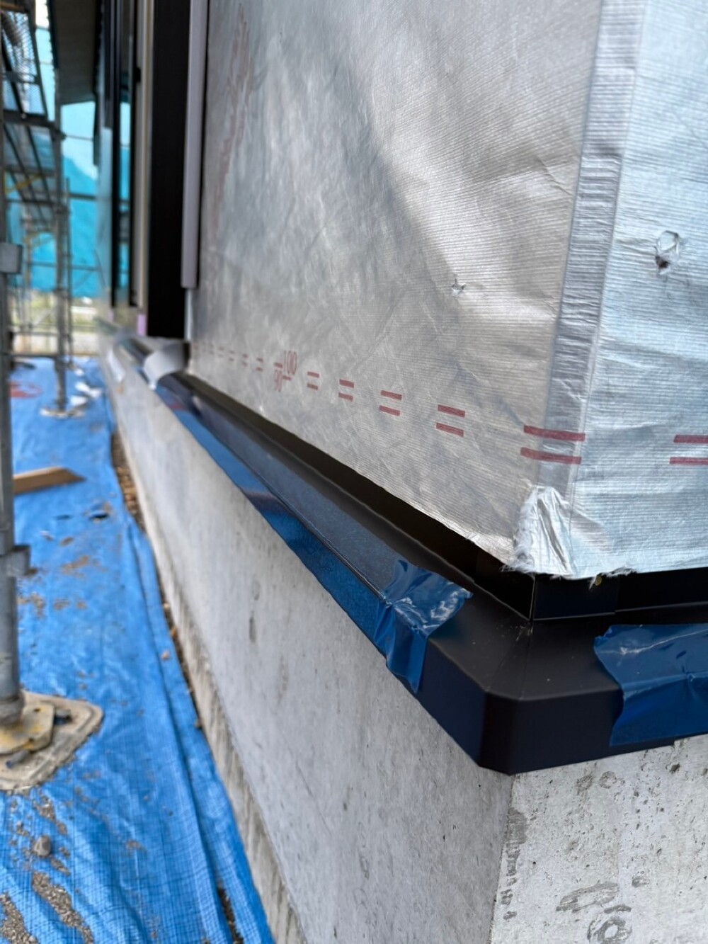 サッシが搬入されましたのでサッシの取付をさせて頂いています🔨