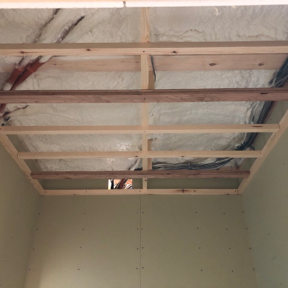 カウンターなどの取付を進め、各室内の天井下地を進めています。
