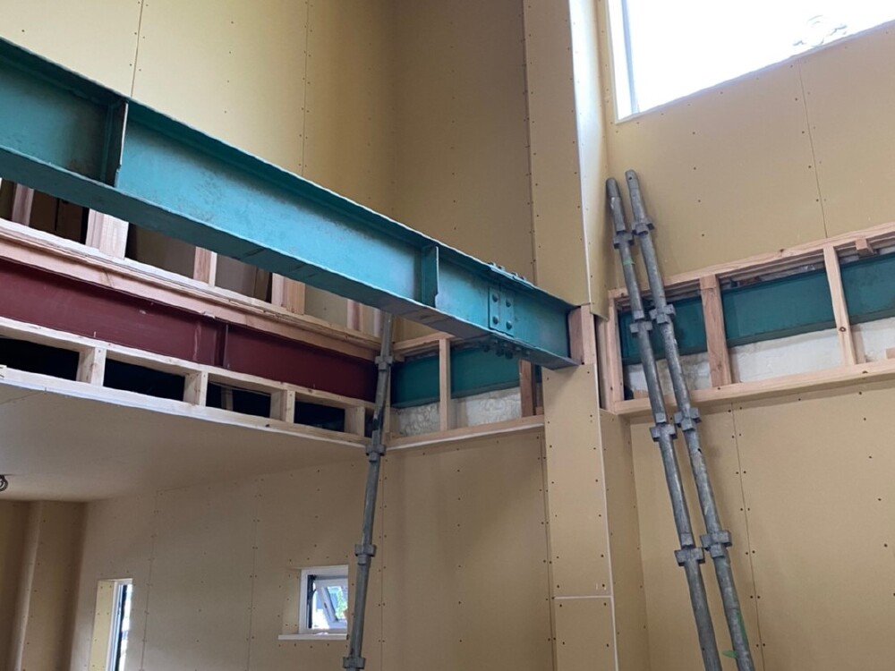 吹抜け部分のボード仕上げ作業をさせて頂いています🔨