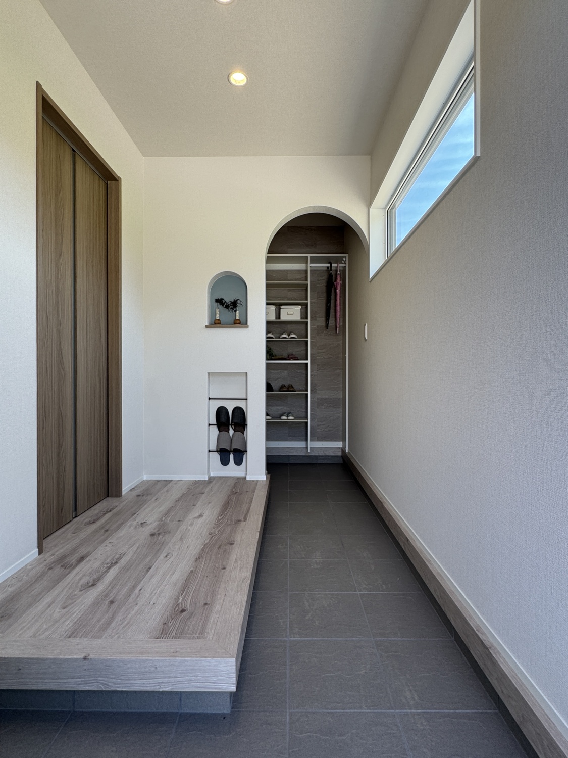玄関スペースは、こだわりのアーチニッチとスリッパニッチがお出迎え。