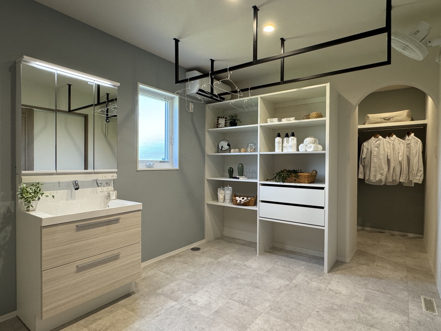 6畳のランドリースペース。奥にはファミリークローゼットを設け