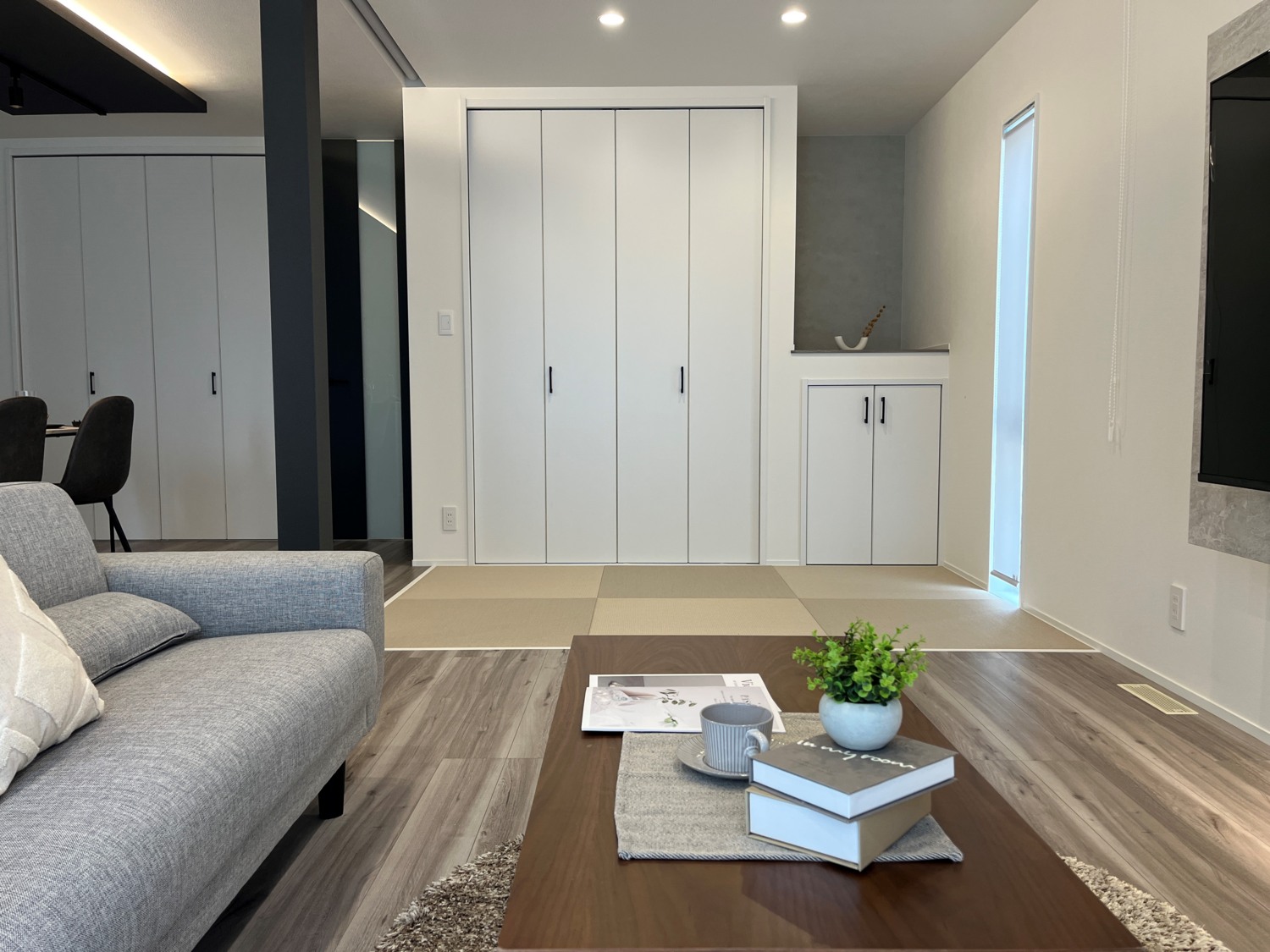 リビングと一体となった畳コーナーには収納スペースもしっかりと配置