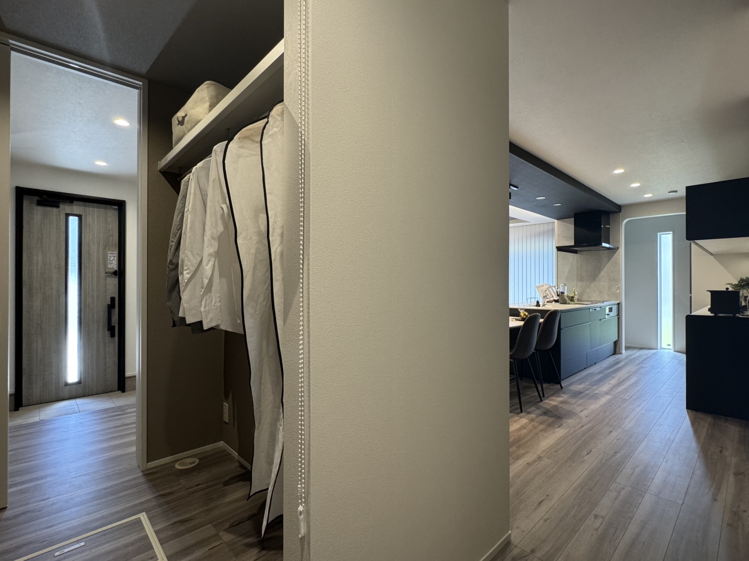 帰宅してすぐにコートやバッグを収納でき、そのままLDKへつながる便利な帰宅動線。