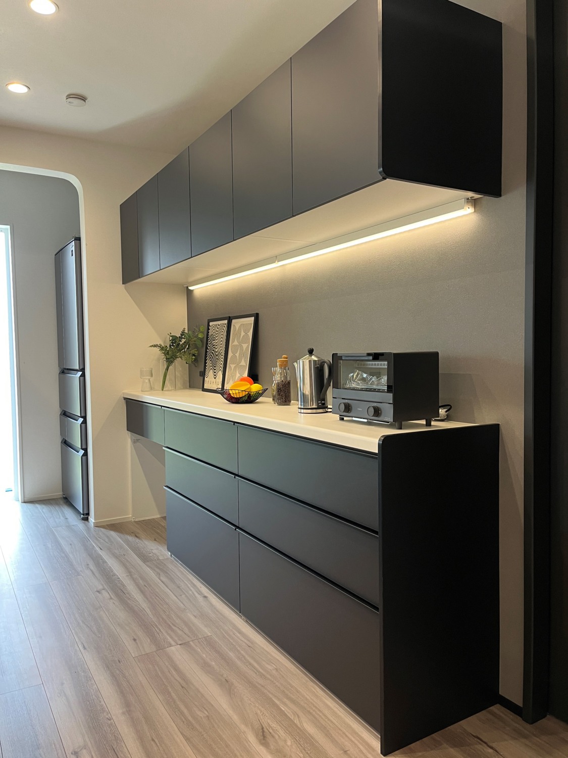 ライン照明を取付ることで調理に必要な明るさを確保しながら、落ち着いた雰囲気を演出できます。