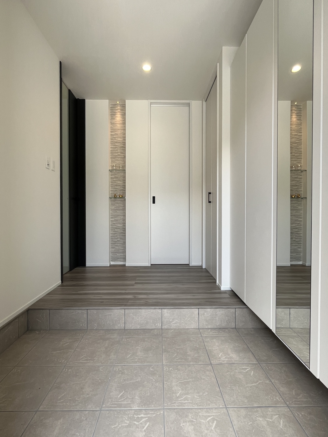 白とグレーを基調としたオシャレな玄関ホール