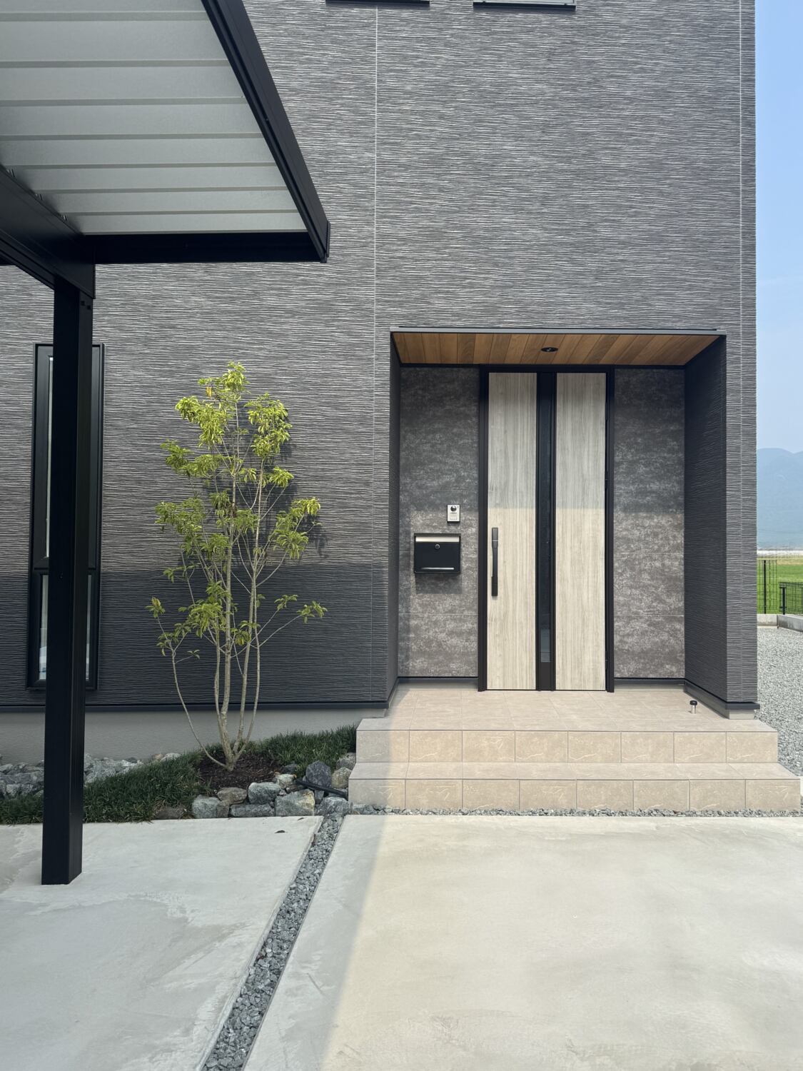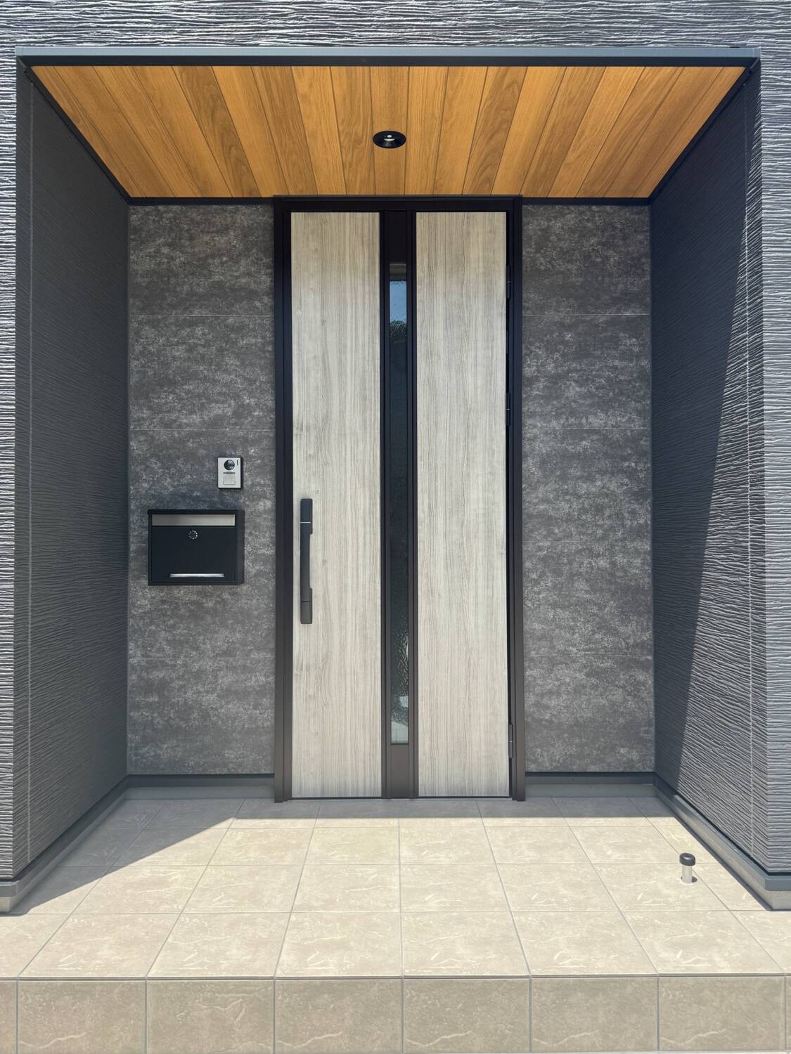 玄関ポーチはトレンド感のあるフラットデザインパネルを採用