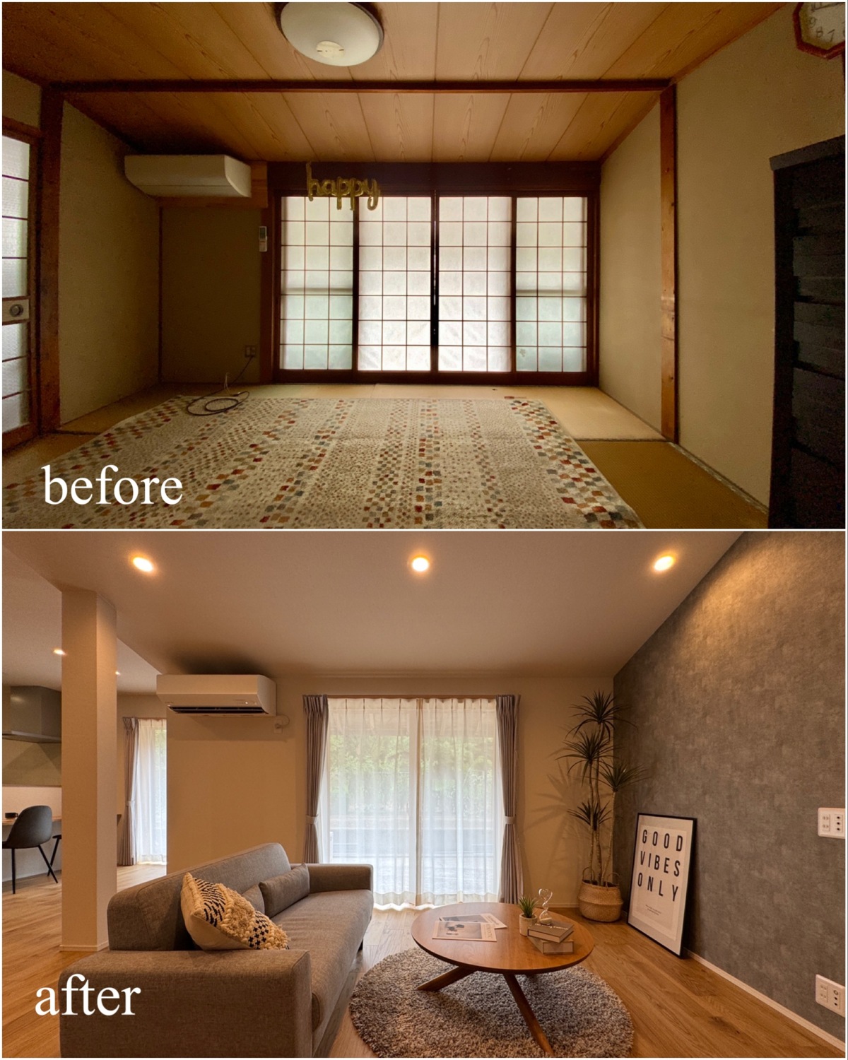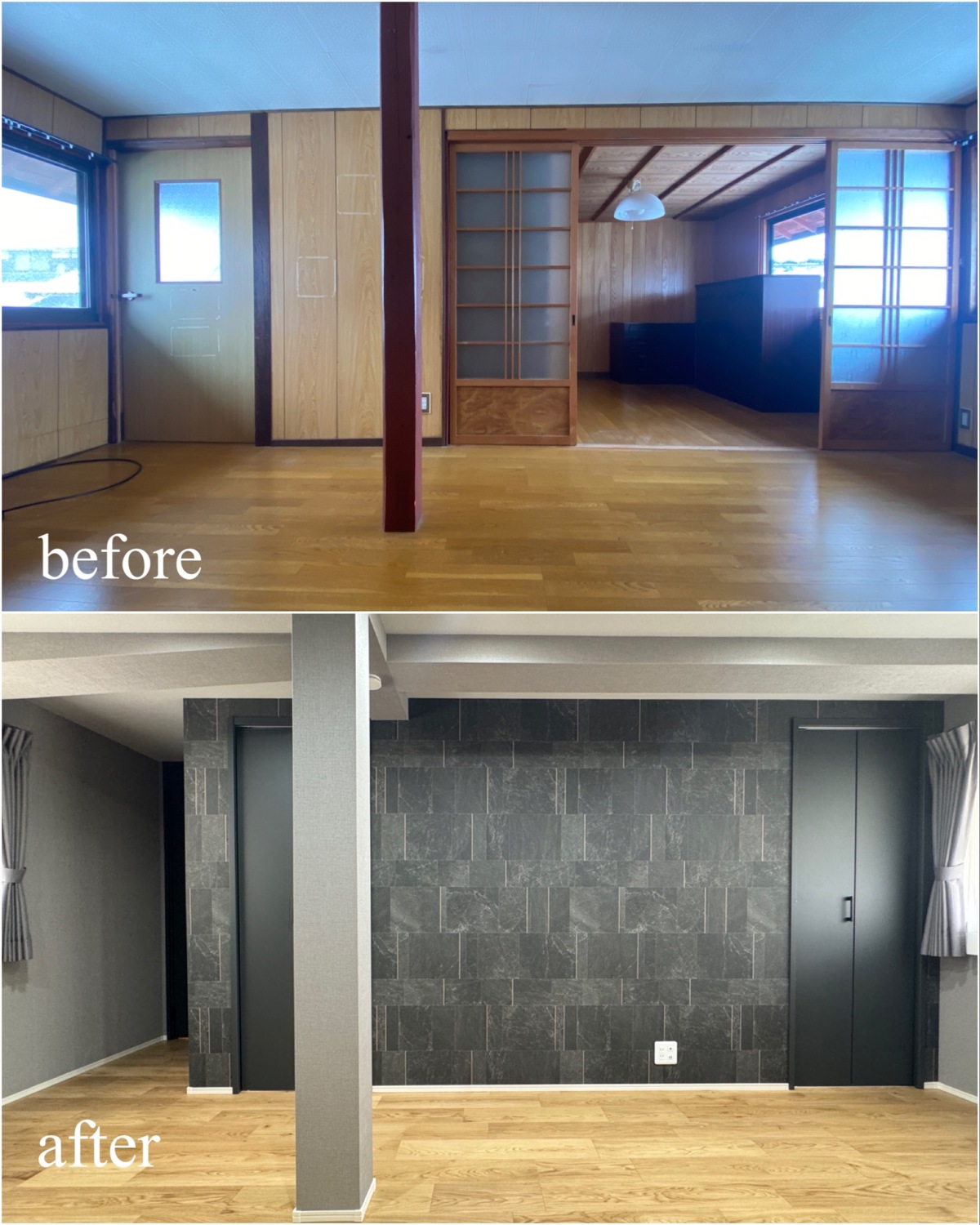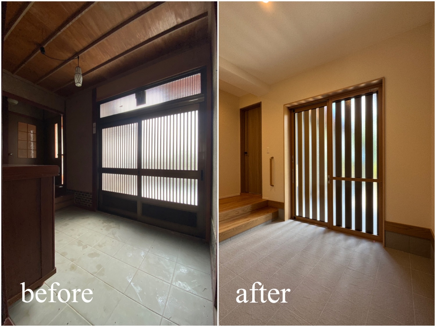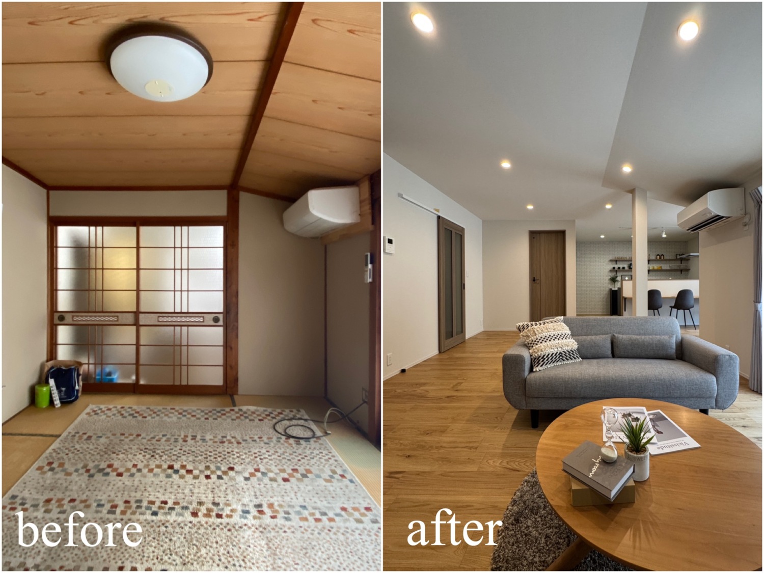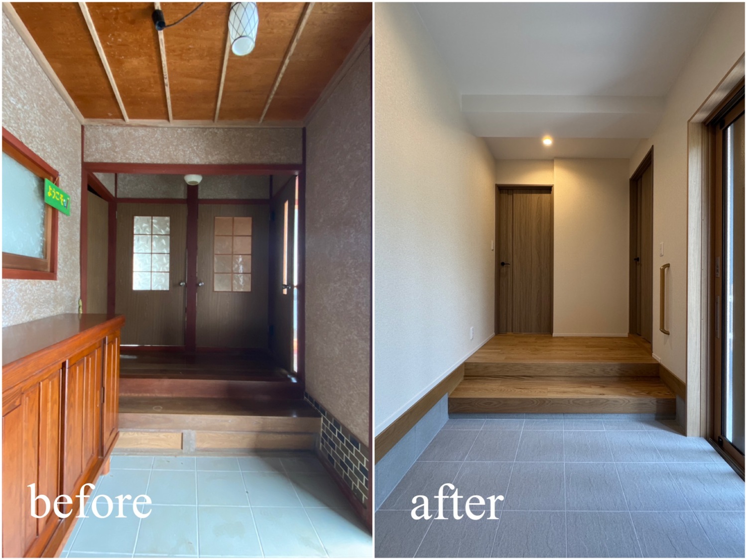 ホーム フォトギャラリー すべて すべて 想いを残して、暮らしをアップデート。築60年のお家をフルリノベーション! 想いを残して、暮らしをアップデート。築60年のお家をフルリノベーション! 丹波市 O様邸リノベーション すべて|すべて 屋根瓦や庭木、石垣など既存の和の魅力は活かしながら、外壁をリフレッシュ。 時を重ねた住まいに、新たな表情を与えました。 外壁:KMEW ネオロック光セラ18 焼杉調 深炭 マックスチタンブラック画像のみを表示全 22 枚中 1 枚目を表示Next ≫ 縦格子の建具が印象的な、落ち着きと上質感のある玄関空間。 素材の風合いを生かしつつ、住まいの「顔」を整えました。 外壁:KMEW ネオロック光セラ18 焼杉調 深炭 マックスチタンブラック 玄関ドア:YKKap れん樹 C03 ハニーチェリー画像のみを表示全 22 枚中 2 枚目を表示≪ Prev|Next ≫ 帰ってきた瞬間にほっとできる、あたたかみのある玄関に。 暮らしに寄り添う空間づくりを大切に クロス:シンコール 天井/BA7206 壁/BA7157 床材:朝日ウッドテック ライブナチュラル MRX イーコア オーク2P ポーチタイル:アドヴァン コルト ライトグレー画像のみを表示全 22 枚中 3 枚目を表示≪ Prev|Next ≫ 暗くなりがちだった玄関もここまで明るく生まれ変わります。 和の雰囲気は残しつつ、現代的な玄関に。 玄関ドア:YKKap れん樹 C03 ハニーチェリー クロス:シンコール 天井/BA7206 壁/BA7157 床材:朝日ウッドテック ライブナチュラル MRX イーコア オーク2P ポーチタイル:アドヴァン コルト ライトグレー画像のみを表示全 22 枚中 4 枚目を表示≪ Prev|Next ≫ 2way動線はそのままに、フロア・クロス・タイルを入れ替え明るい玄関スペースに。 クロス:シンコール 天井/BA7206 壁/BA7157 床材:朝日ウッドテック ライブナチュラル MRX イーコア オーク2P ポーチタイル:アドヴァン コルト ライトグレー画像のみを表示全 22 枚中 5 枚目を表示≪ Prev|Next ≫ 以前は閉鎖的だったキッチン空間は、LDK全体が見渡せる対面キッチンに配置を変更。 家族との会話もはずみますね♪ クロス:シンコール 天井・壁/BA7067 アクセント/BA7225 床材:朝日ウッドテック ライブナチュラル MRX イーコア オーク2P カウンター:造作画像のみを表示全 22 枚中 6 枚目を表示≪ Prev|Next ≫ 居間とダイニングキッチンを繋げて、20帖の大空間LDKに! クロス:シンコール 天井・壁/BA7067 アクセント/BA7237 床材:朝日ウッドテック ライブナチュラル MRX イーコア オーク2P 棚:造作 ウッドワン仕上げている棚板 ライトクリア 画像のみを表示全 22 枚中 7 枚目を表示≪ Prev|Next ≫ クロスはホワイトを基調にし、明るく開放的な空間に生まれ変わりました。 クロス:シンコール 天井・壁/BA7067 アクセント/BA7237 床材:朝日ウッドテック ライブナチュラル MRX イーコア オーク2P 棚:造作 ウッドワン仕上げている棚板 ライトクリア画像のみを表示全 22 枚中 8 枚目を表示≪ Prev|Next ≫ クロス:シンコール 天井・壁/BA7067 アクセント/BA7237 床材:朝日ウッドテック ライブナチュラル MRX イーコア オーク2P カウンター:造作 画像のみを表示全 22 枚中 9 枚目を表示≪ Prev|Next ≫ 間取りを見直し、キッチンからリビングまでつながる一体空間に。 家事もくつろぎも快適な住まいを実現しました。 クロス:シンコール 天井・壁/BA7067 アクセント/BA7225 床材:朝日ウッドテック ライブナチュラル MRX イーコア オーク2P 画像のみを表示全 22 枚中 10 枚目を表示≪ Prev|Next ≫ 和室をリビングへリフォームし、家族が集う明るく開放的な空間に。 内装と照明を一新し、暮らしやすさを高めました。 クロス:シンコール 天井・壁/BA7067 アクセント/BA7237 床材:朝日ウッドテック ライブナチュラル MRX イーコア オーク2P カウンター:造作 ウッドワン仕上げている棚板 ライトクリア ドア:ウッドワン ドレタス グレージュ(オーク柄)画像のみを表示全 22 枚中 11 枚目を表示≪ Prev|Next ≫ 家族との時間が自然と増える、あたたかみのあるリビングへ。 日常を大切にしたリフォームです。 クロス:シンコール 天井・壁/BA7067 アクセント/BA7237 床材:朝日ウッドテック ライブナチュラル MRX イーコア オーク2P 画像のみを表示全 22 枚中 12 枚目を表示≪ Prev|Next ≫ 木目天井が印象的な、ぬくもりの感じる寝室空間。 自然素材の風合いが、やすらぎの時間を演出します。 クロス:シンコール 天井/BA7224 壁/BA7321 床材:朝日ウッドテック ライブナチュラル MRX イーコア オーク2P ドア:ウッドワン ドレタス グレージュ(オーク柄)画像のみを表示全 22 枚中 13 枚目を表示≪ Prev|Next ≫ オープンだった収納スペースをクローゼットに変更し、生活感を隠してすっきりとした空間に整えました。 クロス:シンコール 天井/BA7224 壁/BA7152 床材:朝日ウッドテック ライブナチュラル MRX イーコア オーク2P クローゼットドア:ウッドワン ドレタス グレージュ(オーク柄)画像のみを表示全 22 枚中 14 枚目を表示≪ Prev|Next ≫ 以前は仏間と建具で仕切られていた和室に壁を設けて、来客時にも使いやすい独立した客間として生まれ変わりました。 