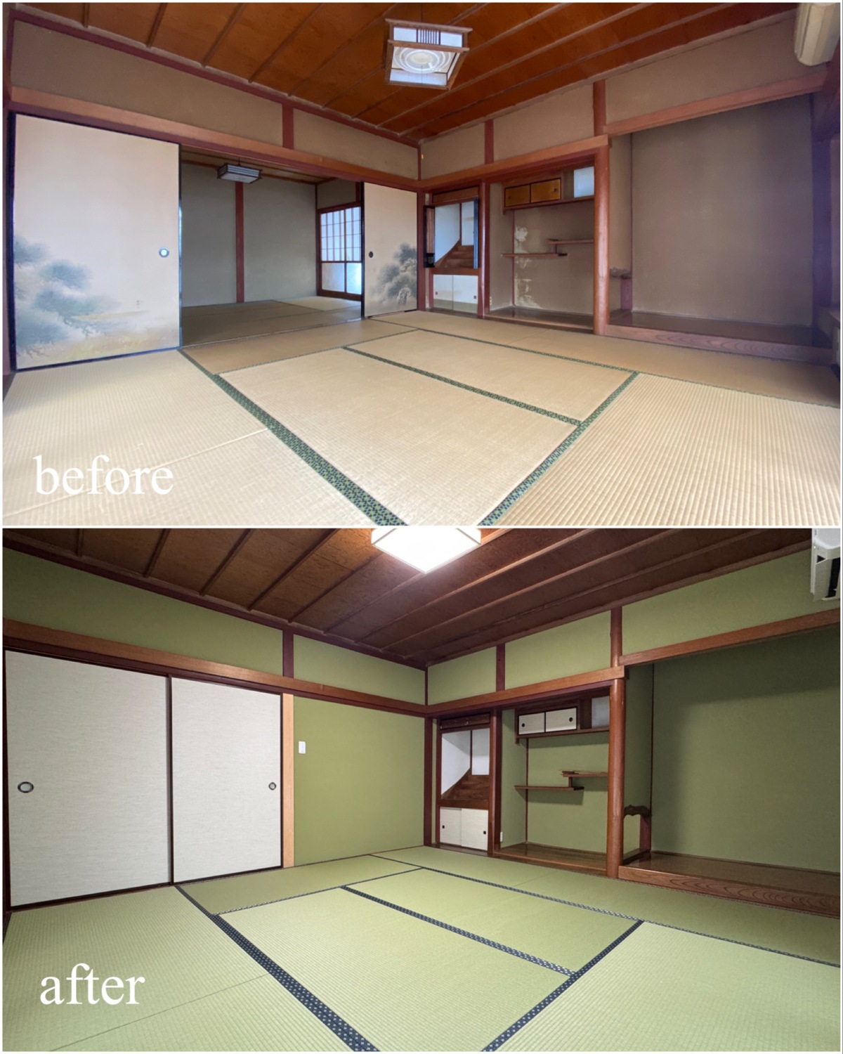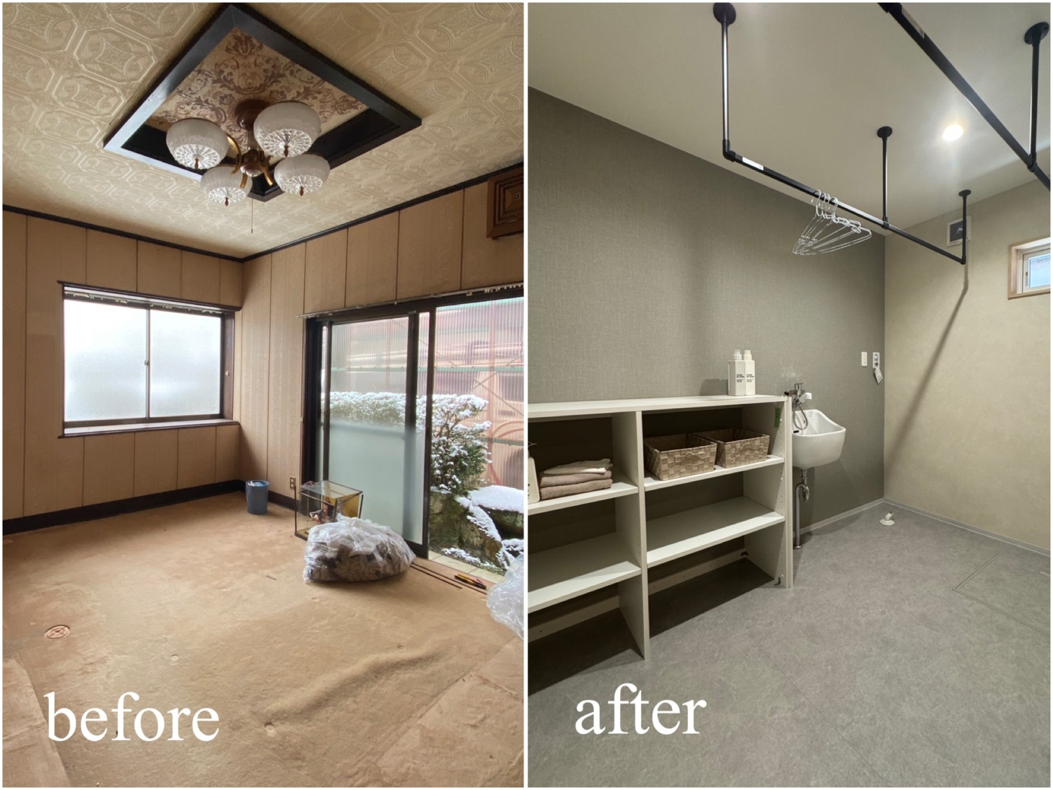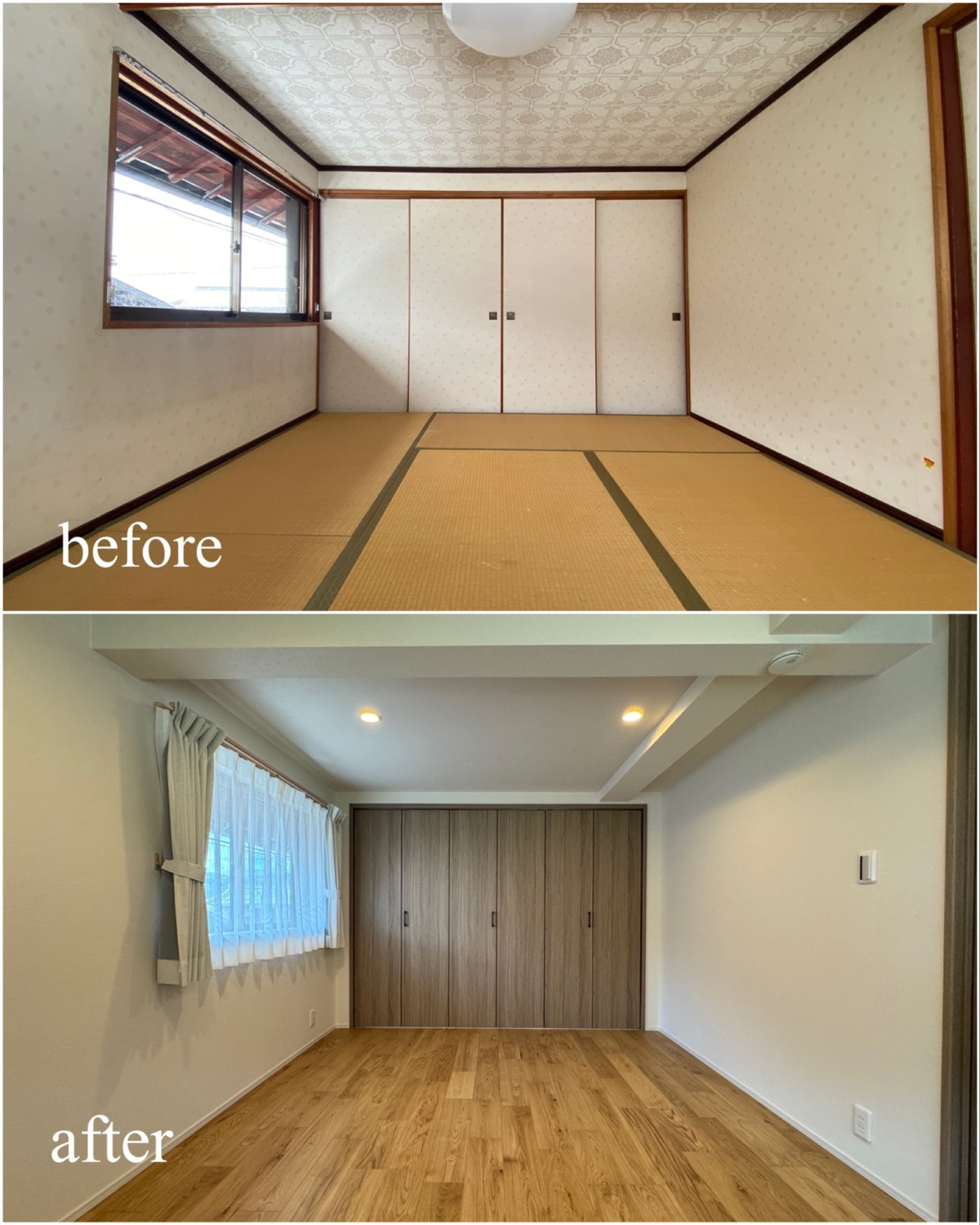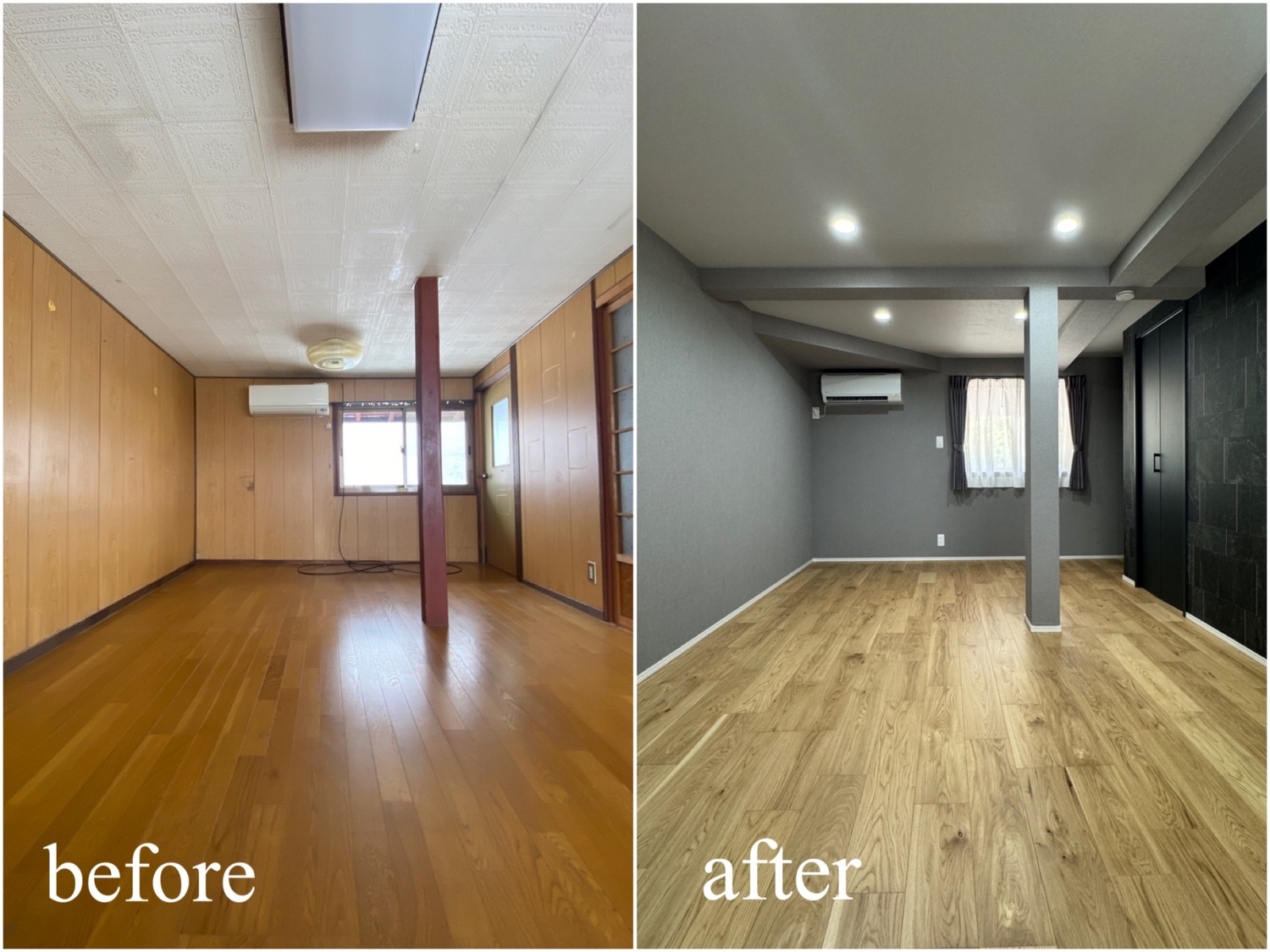ホーム フォトギャラリー すべて すべて 想いを残して、暮らしをアップデート。築60年のお家をフルリノベーション! 想いを残して、暮らしをアップデート。築60年のお家をフルリノベーション! 丹波市 O様邸リノベーション すべて|すべて 屋根瓦や庭木、石垣など既存の和の魅力は活かしながら、外壁をリフレッシュ。 時を重ねた住まいに、新たな表情を与えました。 外壁:KMEW ネオロック光セラ18 焼杉調 深炭 マックスチタンブラック画像のみを表示全 22 枚中 1 枚目を表示Next ≫ 縦格子の建具が印象的な、落ち着きと上質感のある玄関空間。 素材の風合いを生かしつつ、住まいの「顔」を整えました。 外壁:KMEW ネオロック光セラ18 焼杉調 深炭 マックスチタンブラック 玄関ドア:YKKap れん樹 C03 ハニーチェリー画像のみを表示全 22 枚中 2 枚目を表示≪ Prev|Next ≫ 帰ってきた瞬間にほっとできる、あたたかみのある玄関に。 暮らしに寄り添う空間づくりを大切に クロス:シンコール 天井/BA7206 壁/BA7157 床材:朝日ウッドテック ライブナチュラル MRX イーコア オーク2P ポーチタイル:アドヴァン コルト ライトグレー画像のみを表示全 22 枚中 3 枚目を表示≪ Prev|Next ≫ 暗くなりがちだった玄関もここまで明るく生まれ変わります。 和の雰囲気は残しつつ、現代的な玄関に。 玄関ドア:YKKap れん樹 C03 ハニーチェリー クロス:シンコール 天井/BA7206 壁/BA7157 床材:朝日ウッドテック ライブナチュラル MRX イーコア オーク2P ポーチタイル:アドヴァン コルト ライトグレー画像のみを表示全 22 枚中 4 枚目を表示≪ Prev|Next ≫ 2way動線はそのままに、フロア・クロス・タイルを入れ替え明るい玄関スペースに。 クロス:シンコール 天井/BA7206 壁/BA7157 床材:朝日ウッドテック ライブナチュラル MRX イーコア オーク2P ポーチタイル:アドヴァン コルト ライトグレー画像のみを表示全 22 枚中 5 枚目を表示≪ Prev|Next ≫ 以前は閉鎖的だったキッチン空間は、LDK全体が見渡せる対面キッチンに配置を変更。 家族との会話もはずみますね♪ クロス:シンコール 天井・壁/BA7067 アクセント/BA7225 床材:朝日ウッドテック ライブナチュラル MRX イーコア オーク2P カウンター:造作画像のみを表示全 22 枚中 6 枚目を表示≪ Prev|Next ≫ 居間とダイニングキッチンを繋げて、20帖の大空間LDKに! クロス:シンコール 天井・壁/BA7067 アクセント/BA7237 床材:朝日ウッドテック ライブナチュラル MRX イーコア オーク2P 棚:造作 ウッドワン仕上げている棚板 ライトクリア 画像のみを表示全 22 枚中 7 枚目を表示≪ Prev|Next ≫ クロスはホワイトを基調にし、明るく開放的な空間に生まれ変わりました。 クロス:シンコール 天井・壁/BA7067 アクセント/BA7237 床材:朝日ウッドテック ライブナチュラル MRX イーコア オーク2P 棚:造作 ウッドワン仕上げている棚板 ライトクリア画像のみを表示全 22 枚中 8 枚目を表示≪ Prev|Next ≫ クロス:シンコール 天井・壁/BA7067 アクセント/BA7237 床材:朝日ウッドテック ライブナチュラル MRX イーコア オーク2P カウンター:造作 画像のみを表示全 22 枚中 9 枚目を表示≪ Prev|Next ≫ 間取りを見直し、キッチンからリビングまでつながる一体空間に。 家事もくつろぎも快適な住まいを実現しました。 クロス:シンコール 天井・壁/BA7067 アクセント/BA7225 床材:朝日ウッドテック ライブナチュラル MRX イーコア オーク2P 画像のみを表示全 22 枚中 10 枚目を表示≪ Prev|Next ≫ 和室をリビングへリフォームし、家族が集う明るく開放的な空間に。 内装と照明を一新し、暮らしやすさを高めました。 クロス:シンコール 天井・壁/BA7067 アクセント/BA7237 床材:朝日ウッドテック ライブナチュラル MRX イーコア オーク2P カウンター:造作 ウッドワン仕上げている棚板 ライトクリア ドア:ウッドワン ドレタス グレージュ(オーク柄)画像のみを表示全 22 枚中 11 枚目を表示≪ Prev|Next ≫ 家族との時間が自然と増える、あたたかみのあるリビングへ。 日常を大切にしたリフォームです。 クロス:シンコール 天井・壁/BA7067 アクセント/BA7237 床材:朝日ウッドテック ライブナチュラル MRX イーコア オーク2P 画像のみを表示全 22 枚中 12 枚目を表示≪ Prev|Next ≫ 木目天井が印象的な、ぬくもりの感じる寝室空間。 自然素材の風合いが、やすらぎの時間を演出します。 クロス:シンコール 天井/BA7224 壁/BA7321 床材:朝日ウッドテック ライブナチュラル MRX イーコア オーク2P ドア:ウッドワン ドレタス グレージュ(オーク柄)画像のみを表示全 22 枚中 13 枚目を表示≪ Prev|Next ≫ オープンだった収納スペースをクローゼットに変更し、生活感を隠してすっきりとした空間に整えました。 クロス:シンコール 天井/BA7224 壁/BA7152 床材:朝日ウッドテック ライブナチュラル MRX イーコア オーク2P クローゼットドア:ウッドワン ドレタス グレージュ(オーク柄)画像のみを表示全 22 枚中 14 枚目を表示≪ Prev|Next ≫ 以前は仏間と建具で仕切られていた和室に壁を設けて、来客時にも使いやすい独立した客間として生まれ変わりました。 