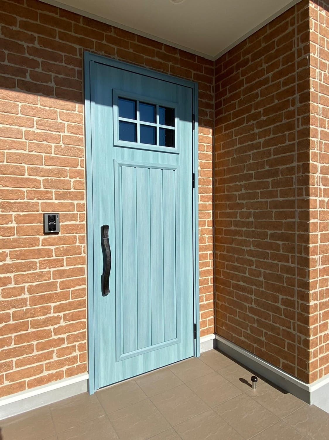温かみのあるレンガ調とシャープなストライプ柄の外壁を組み合わせた海外風の外観
