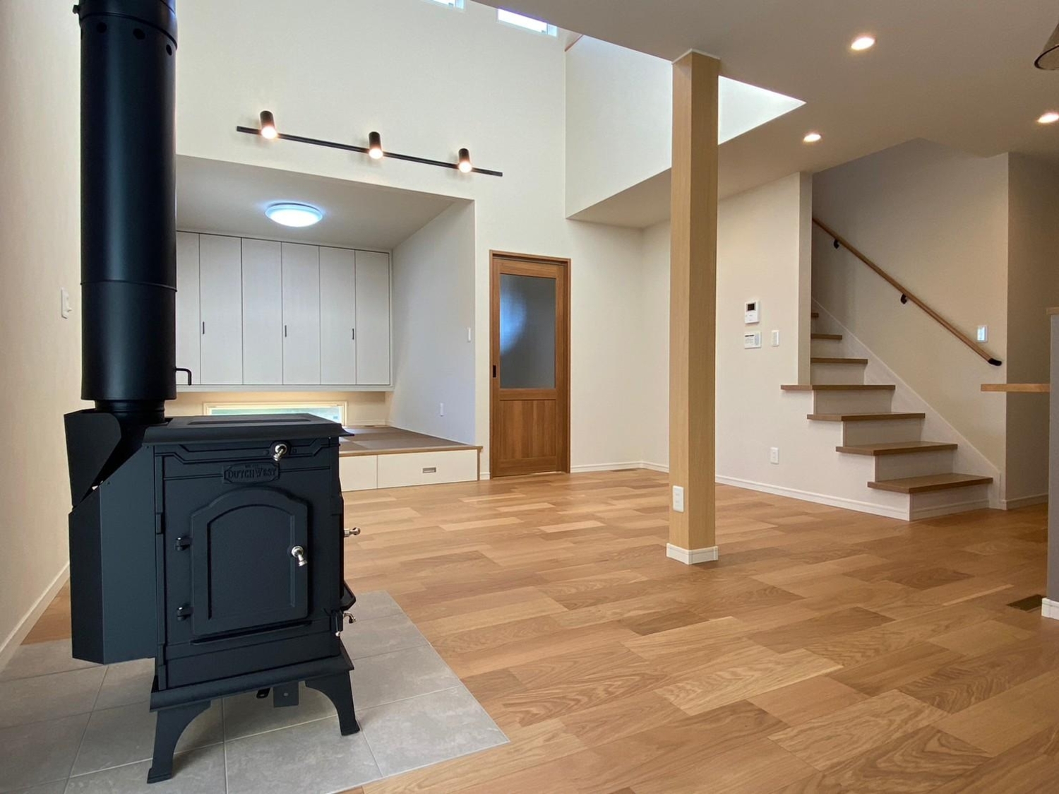 家族がストーブを囲んで団らんする姿が思い浮かぶような優しい雰囲気のお住まいができました