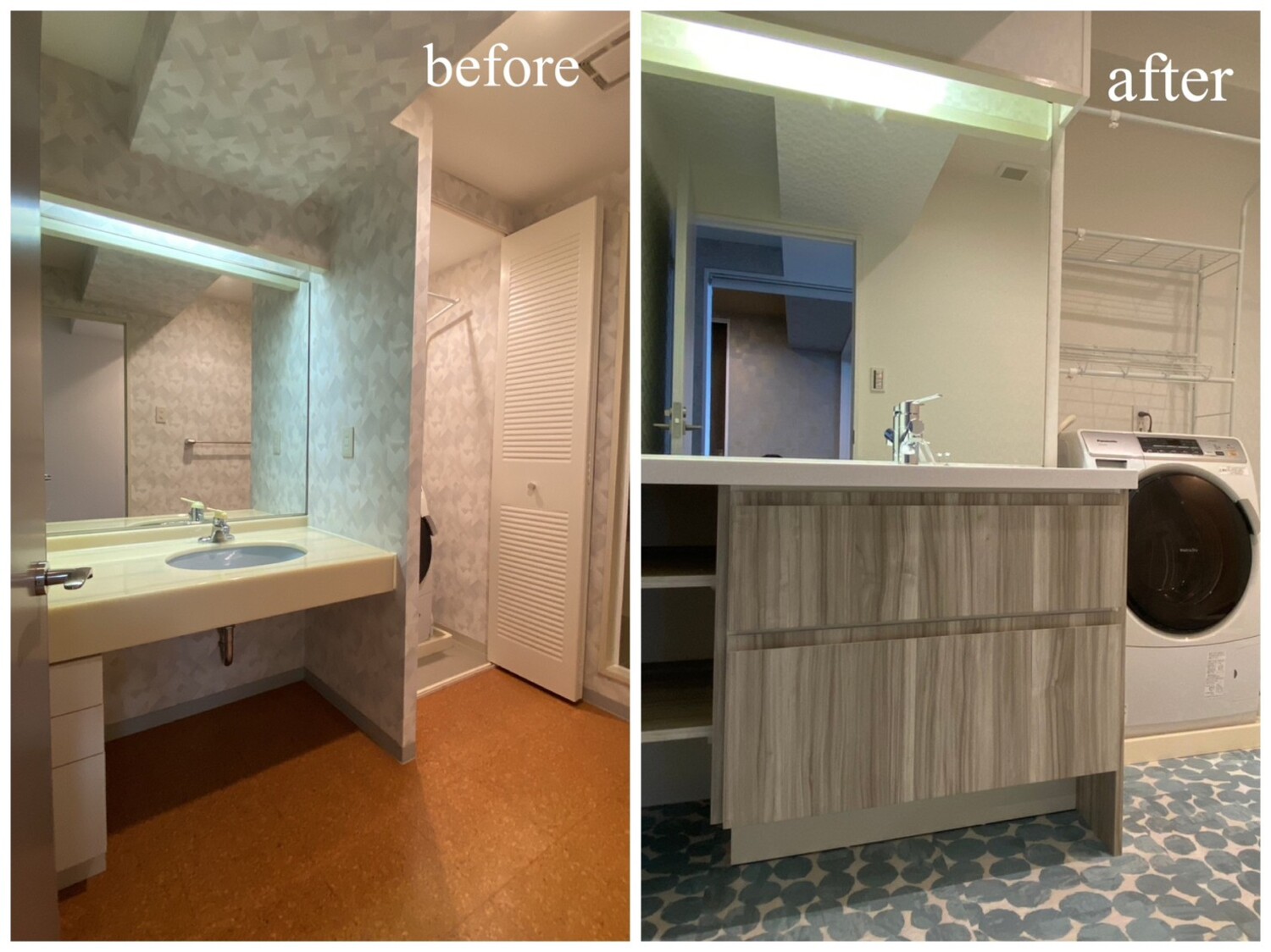 仕切られていた壁や扉を無くし、水廻りの作業がしやすくなった洗濯洗面所