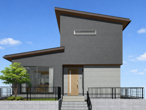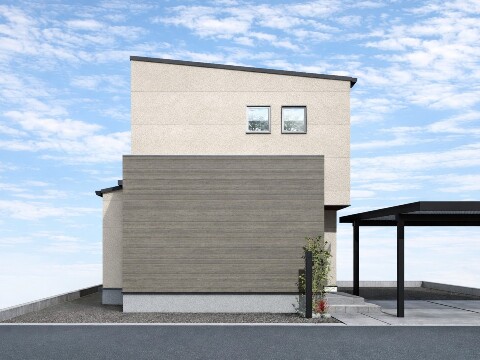 ガルバの外壁材でとてもスタイリッシュな外観です♪