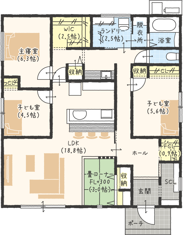 ▲子上り畳コーナーが寛ぎの時間をつくります